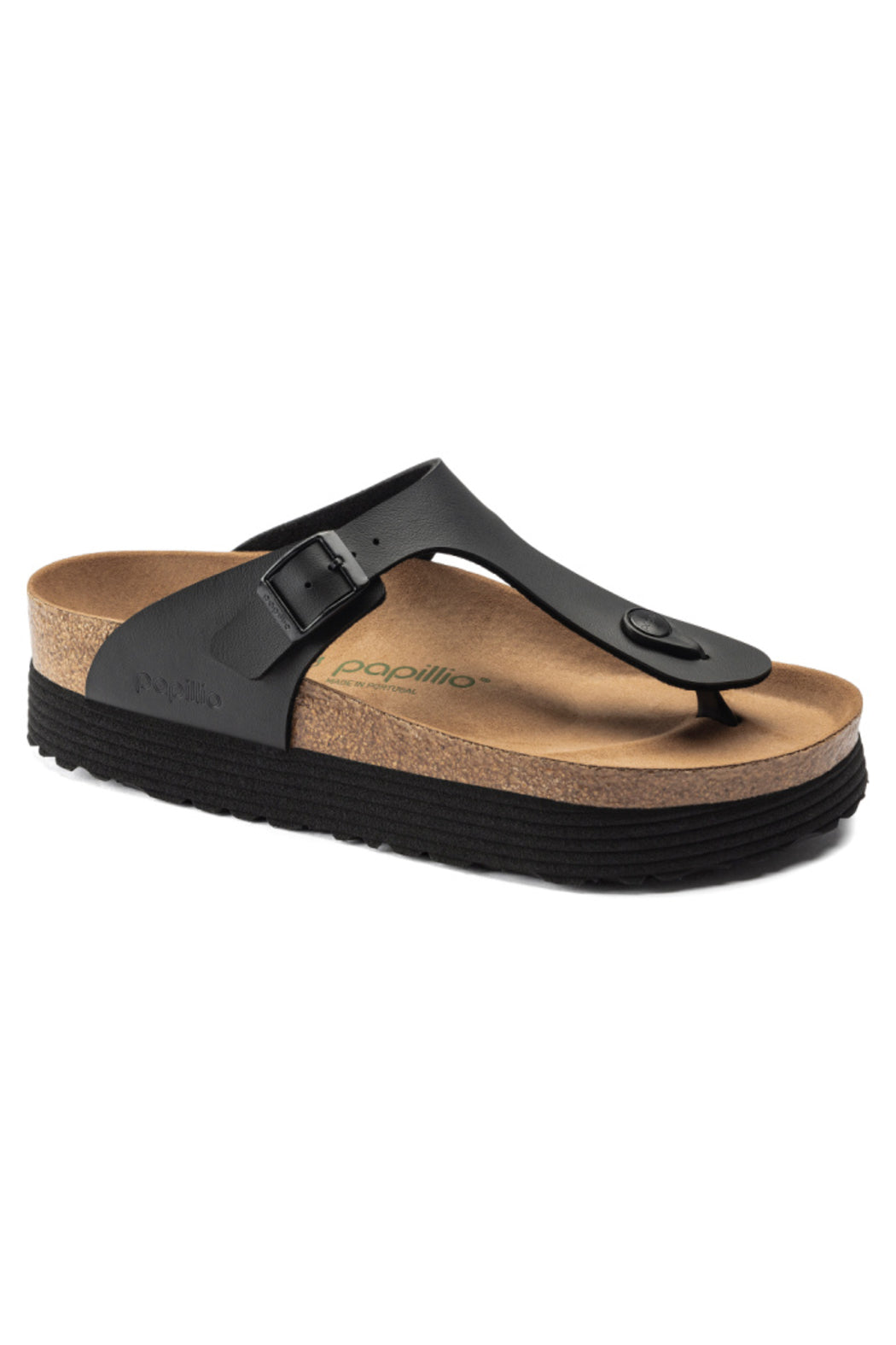 The Gizeh is a genuine classic and a stylish all-rounder. Here, Papillio presents the thong sandal with a trendy platform sole. The bevel results in maximum walking comfort. Its modern, grooved sole makes for a real eye-catcher and this model is even available as a vegan version. It is entirely free of animal products, as verified by independent testing laboratories. The upper is made from the skin-friendly, hard-wearing synthetic material Birko-Flor®.