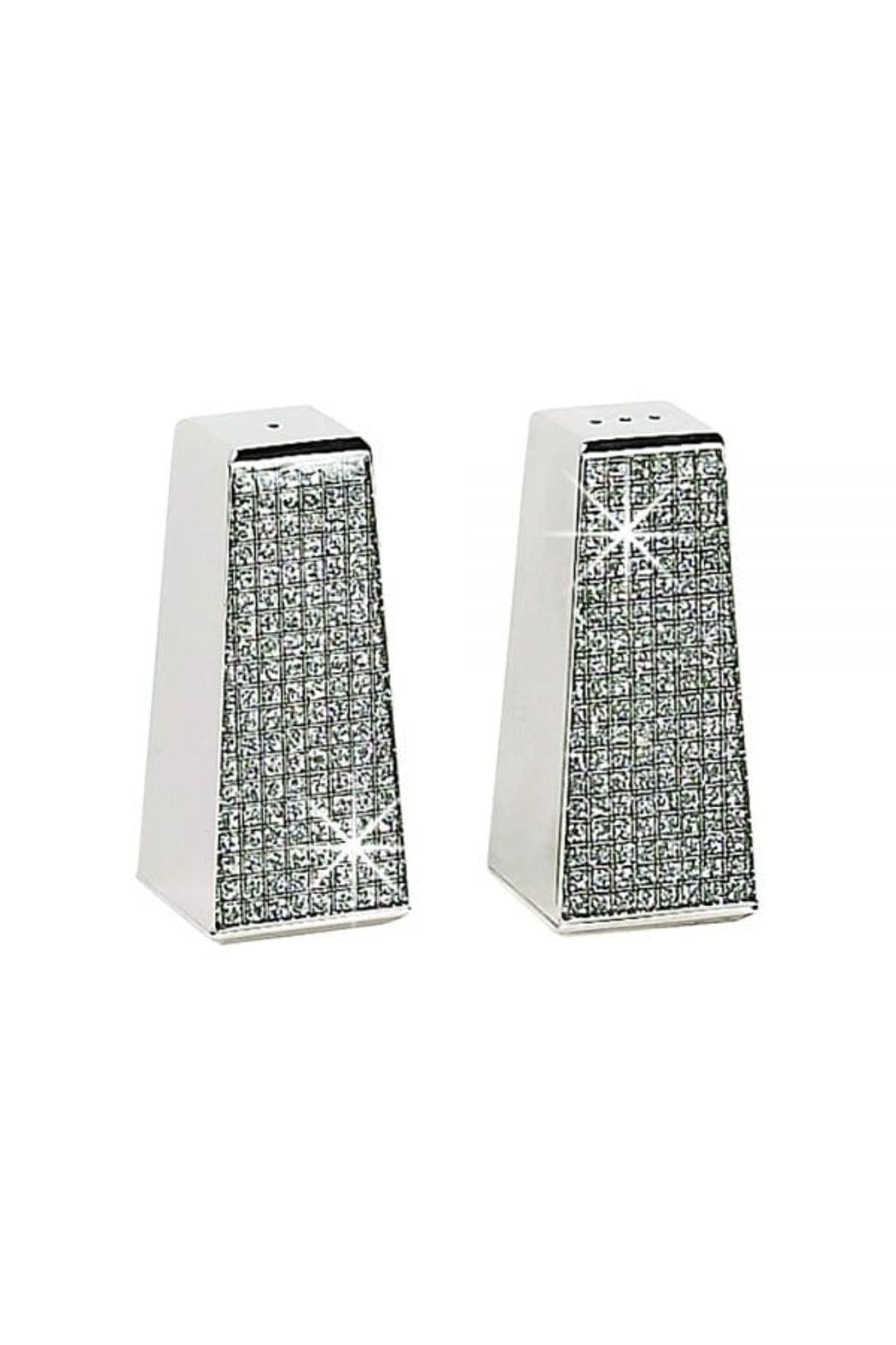 This pair of 3? tall salt and pepper shakers feature the Glitter Galore look of acrylic covered crystals encased in bright, silver-colored, non-tarnishing metal on 2 of their 4 sides. Each shaker loads from the bottom into a plastic lined sleeve for cleanliness. These shakers are a great way to add sparkle to any table, and they coordinate with other table related items from the Glitter Galore Collection. Popular with brides for receptions, or anyone who likes the sparkle they add to their table.