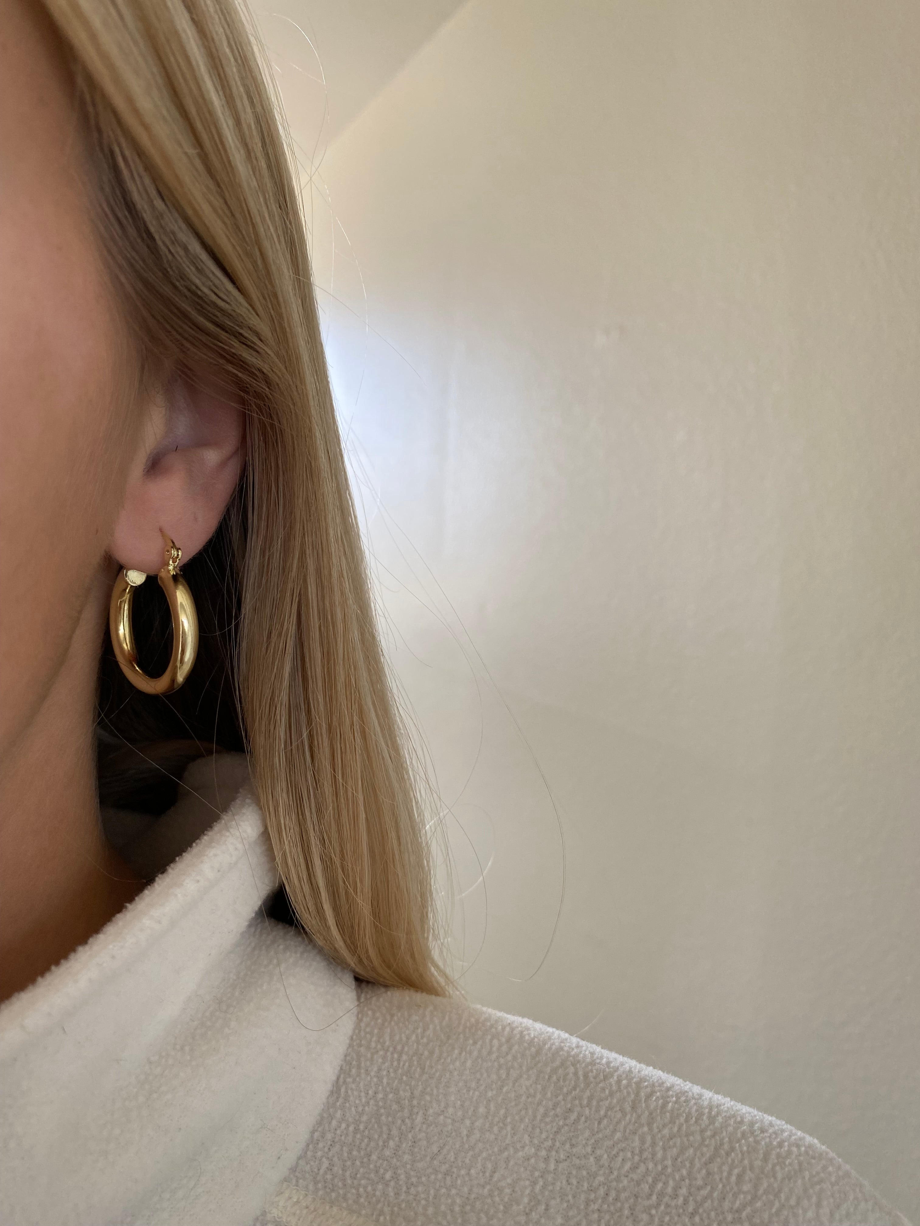 Introducing Godo, the ideal basic hoop for your everyday look. With its sleek design and lightweight construction, Godo is perfect for showing off your sense of style in effortless comfort.