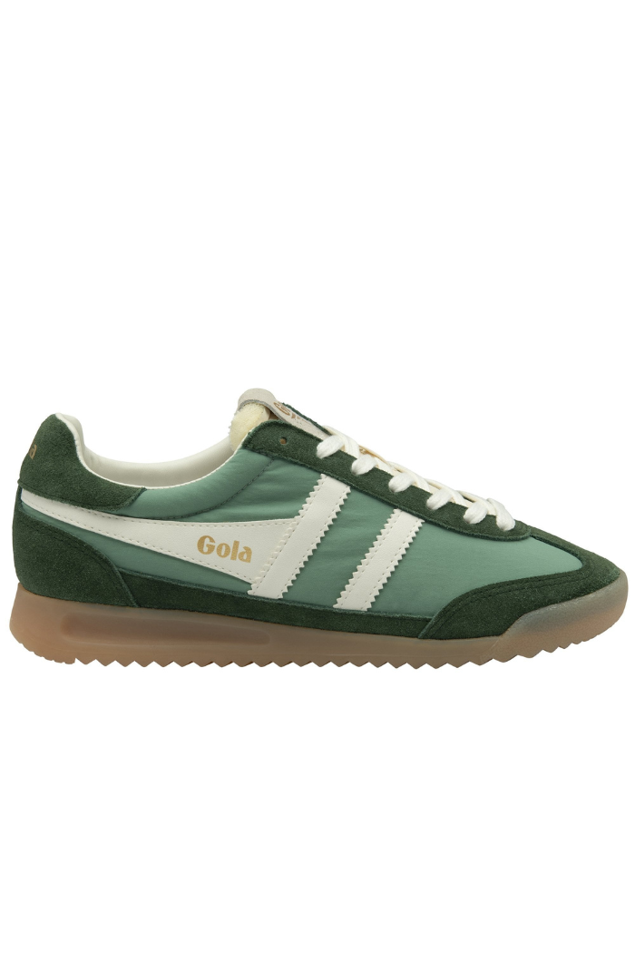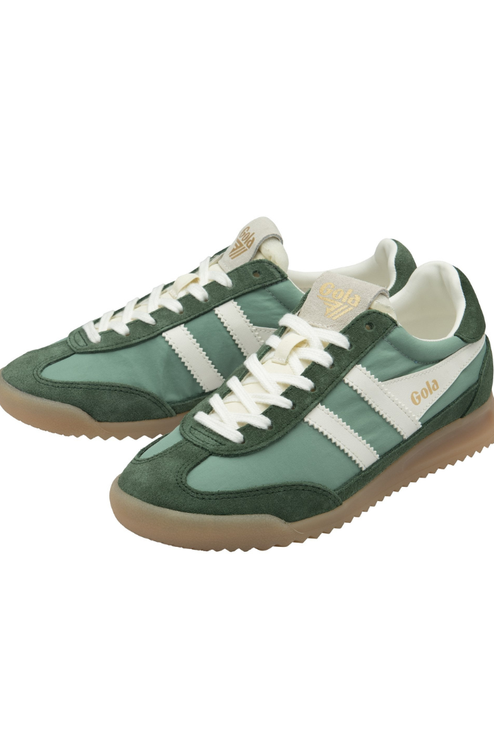 With its striking colour palette Firefly ramps up the women’s coloured sneaker barometer. So if you’re in need of a colour injection Firefly has got you covered. Combining tone on tone shades of green mist with evergreeen and off white, let Gola’s Firefly light up your looks. The upper combines vintage nylon with suede panels, offering a refined freshness with a real pop of colour injection. Firefly effortlessly balances vintage Gola looks with a modern twist.