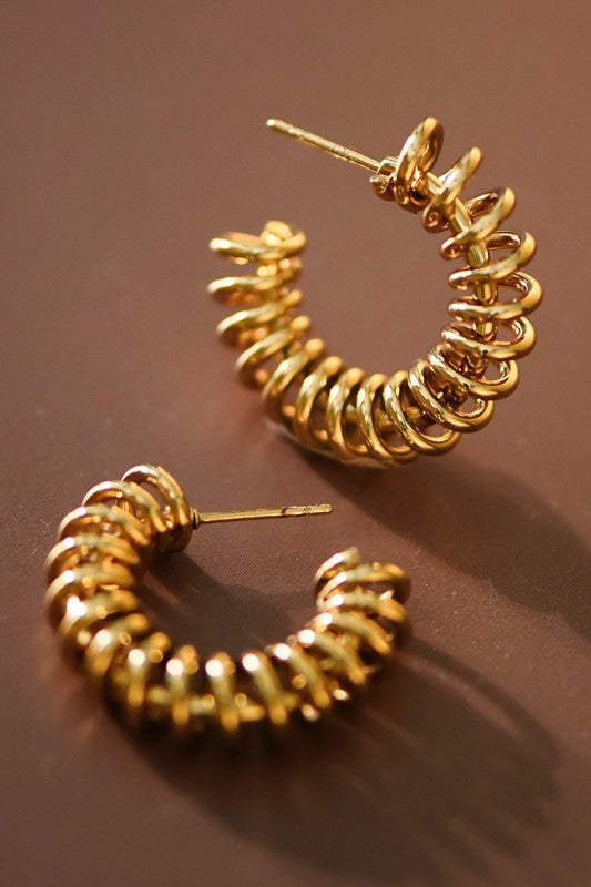 18K Gold Plated Stainless Steel Spiral Hoop Earrings. These are hypoallergenic, waterproof, fade-resistant, and tarnish-free, ensuring their beauty lasts for years. Perfect for everyday wear or special occasions. Simple Gold Earrings | Waterproof & Sweatproof Jewelry | Simple Lightweight Earrings | Minimalist Earrings | Real Gold Dipped Earrings | Real Gold Plated Earrings | Stainless Steel Metal Earrings