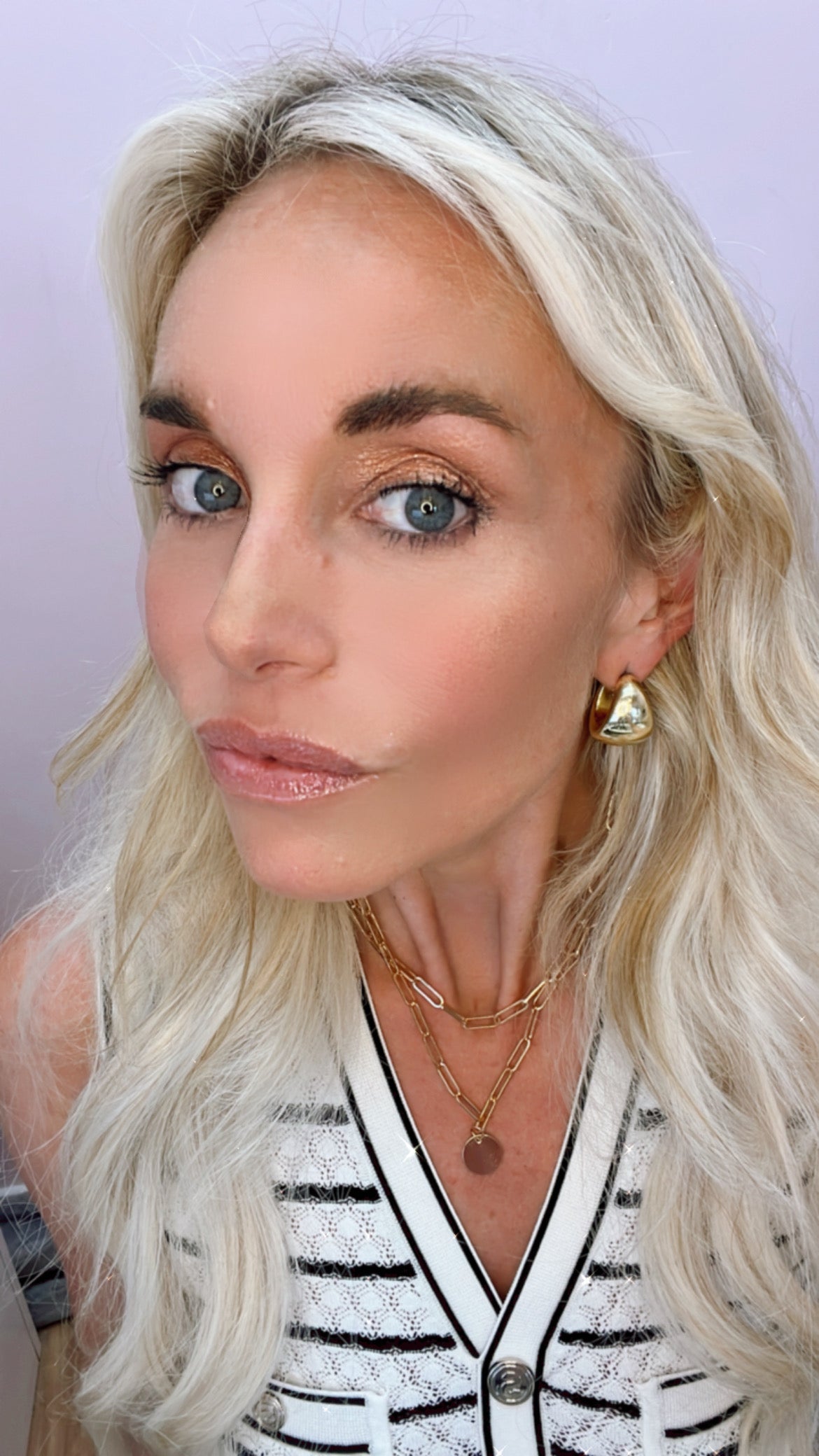 A layered paperclip chain necklace in gold with a beautiful round pendant.