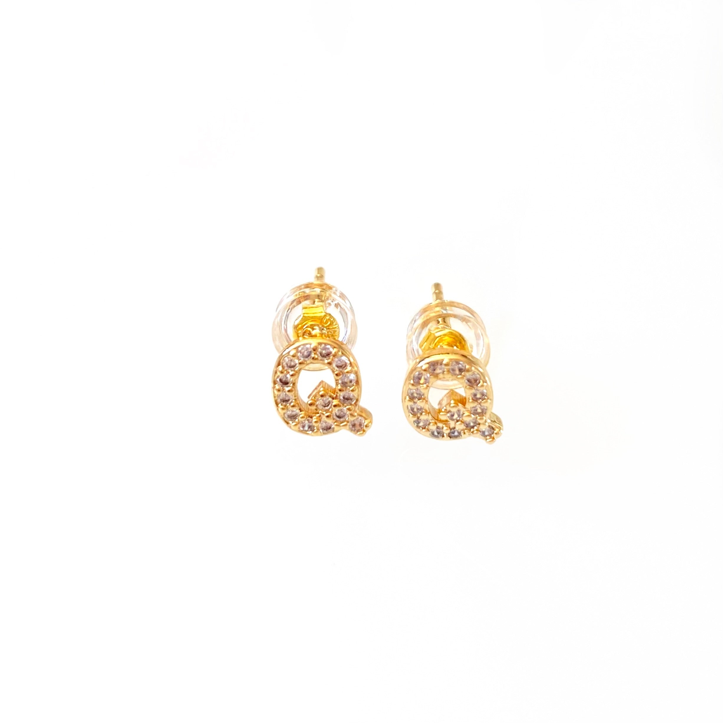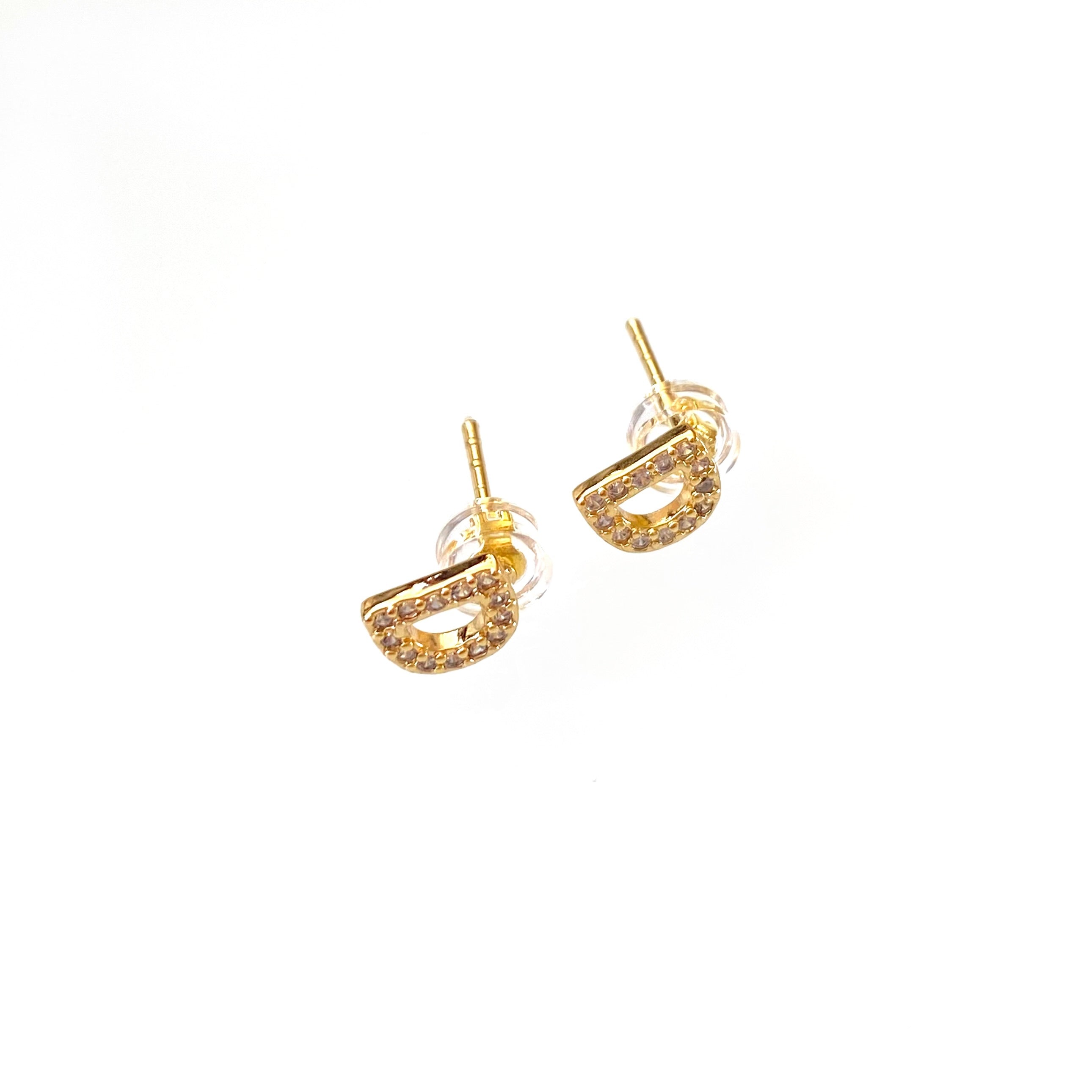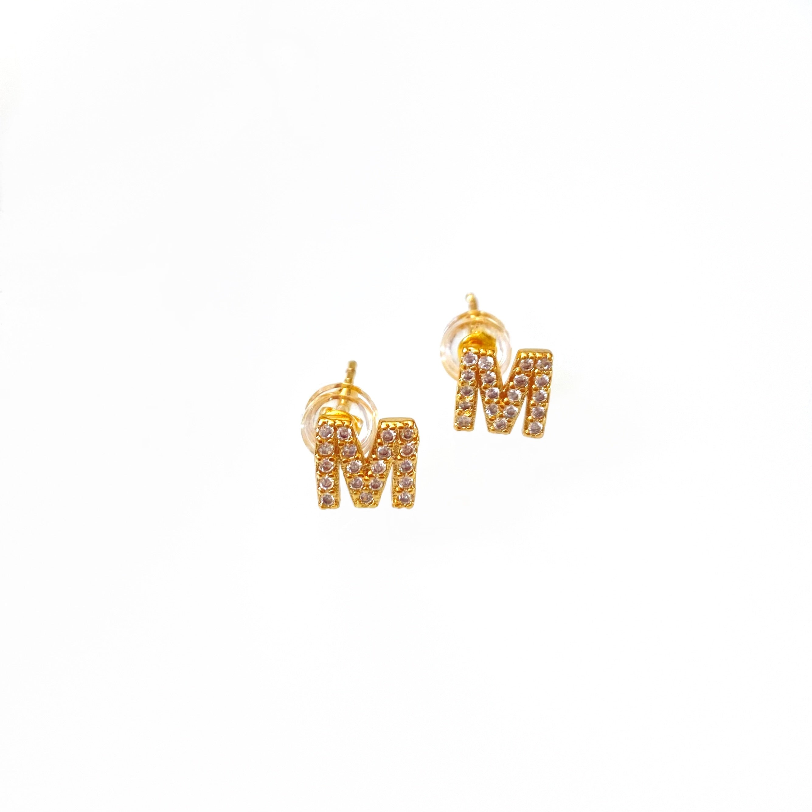 Declare your individuality with these beautiful Gold Initial Studs! Made with gold and lined with shimmering cz's, these earrings will be sure to add a personal touch to any outfit.