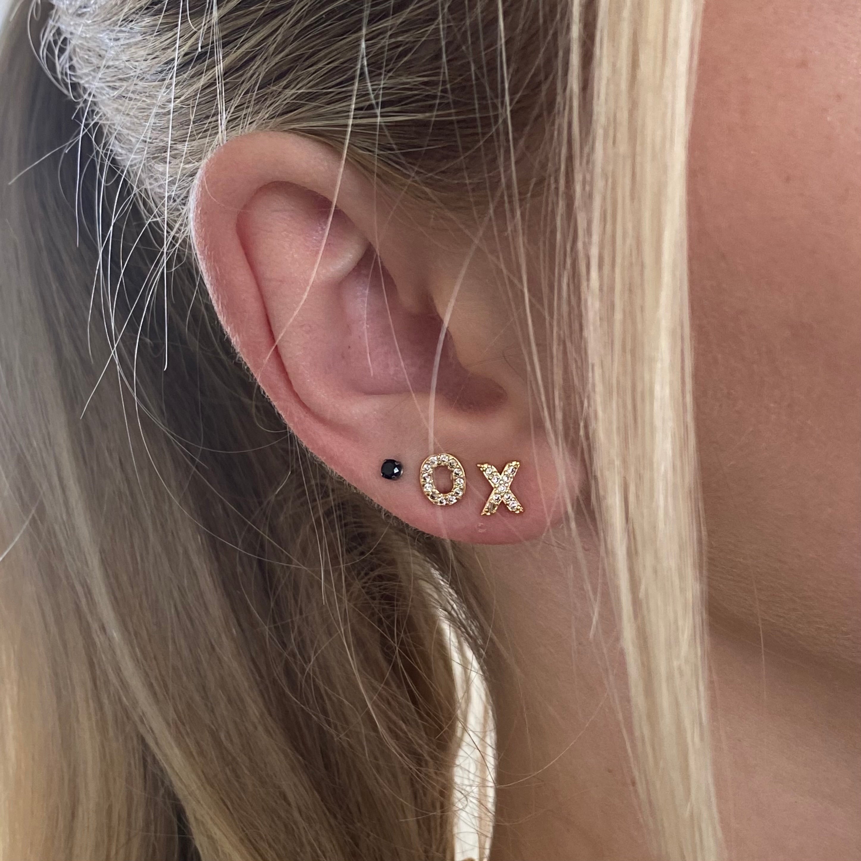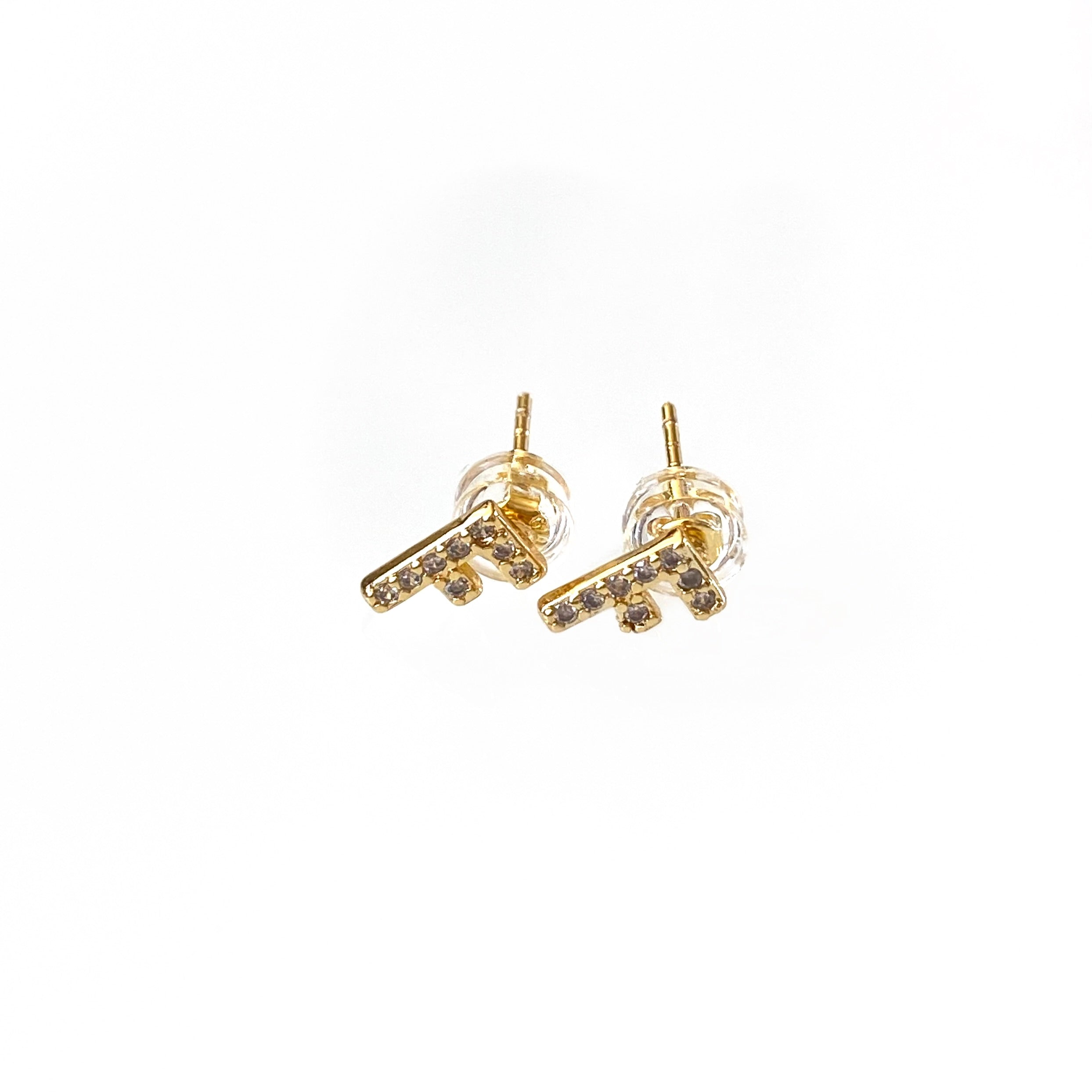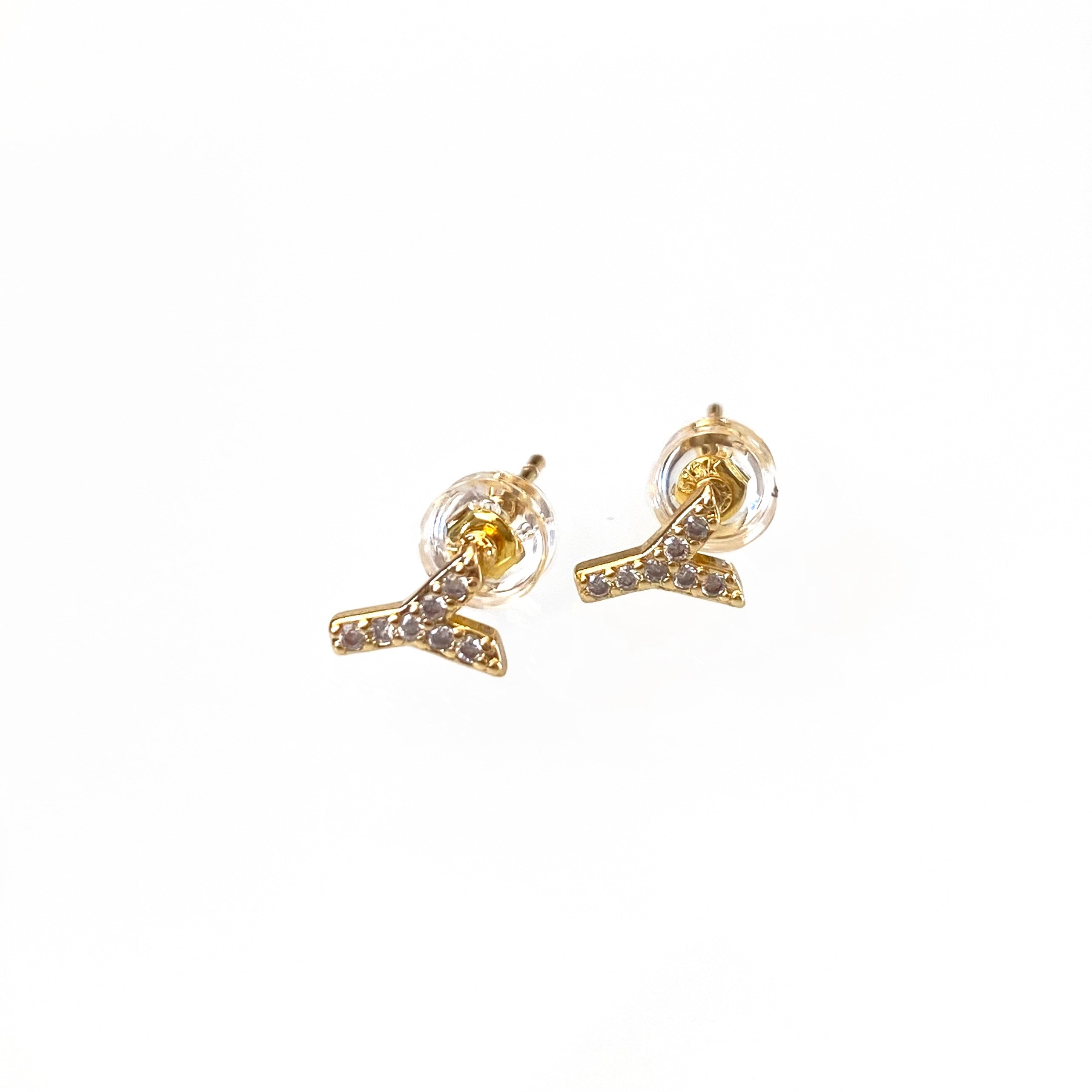 Declare your individuality with these beautiful Gold Initial Studs! Made with gold and lined with shimmering cz's, these earrings will be sure to add a personal touch to any outfit.