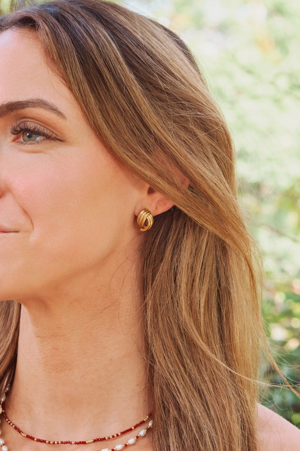The Gold Knot Studs are timeless jewelry with a modern twist. These studs bring effortless elegance to every look, finished in waterproof 14k gold over durable stainless steel—so they shine from weekdays to weekends without the hassle. Perfect for everyday minimalism, office-to-out styling, dates, and travels.