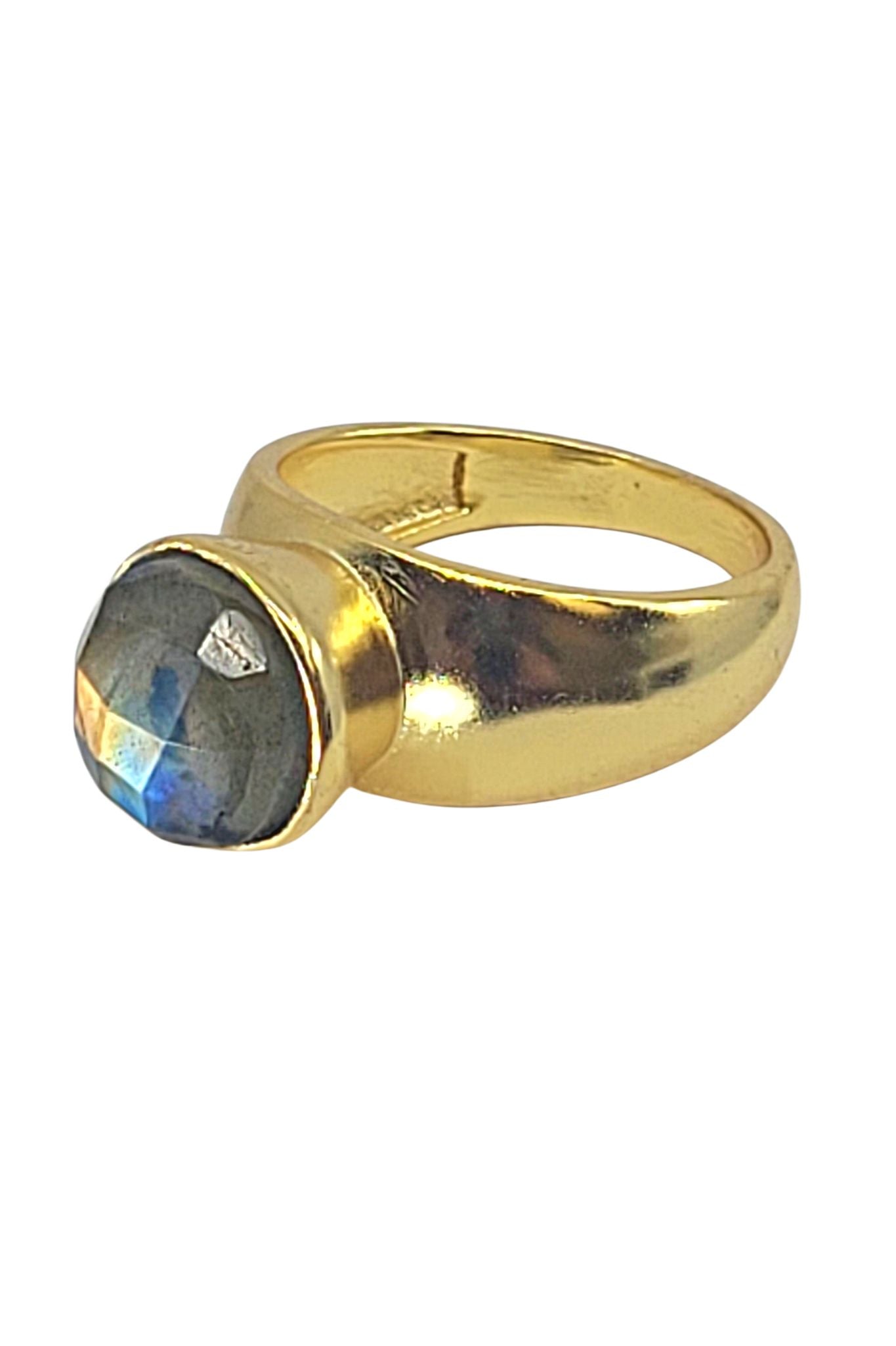 Gold Ring with Round Labradorite Stone