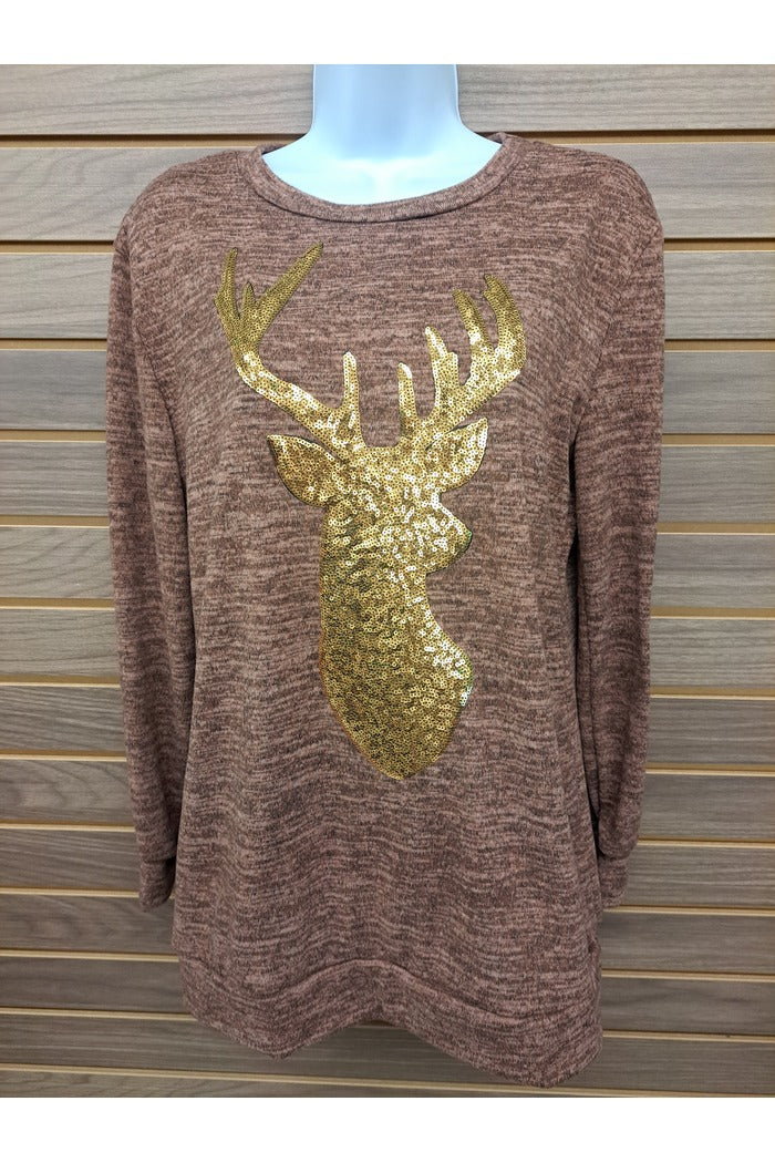 This Gold Sequin Deer Long Sleeved top is the perfect way to stand out in any crowd. With its eye-catching sequined pattern, it adds a glam and chic vibe to any ensemble. Made of soft and lightweight fabric, it ensures comfort and breathability all day long.