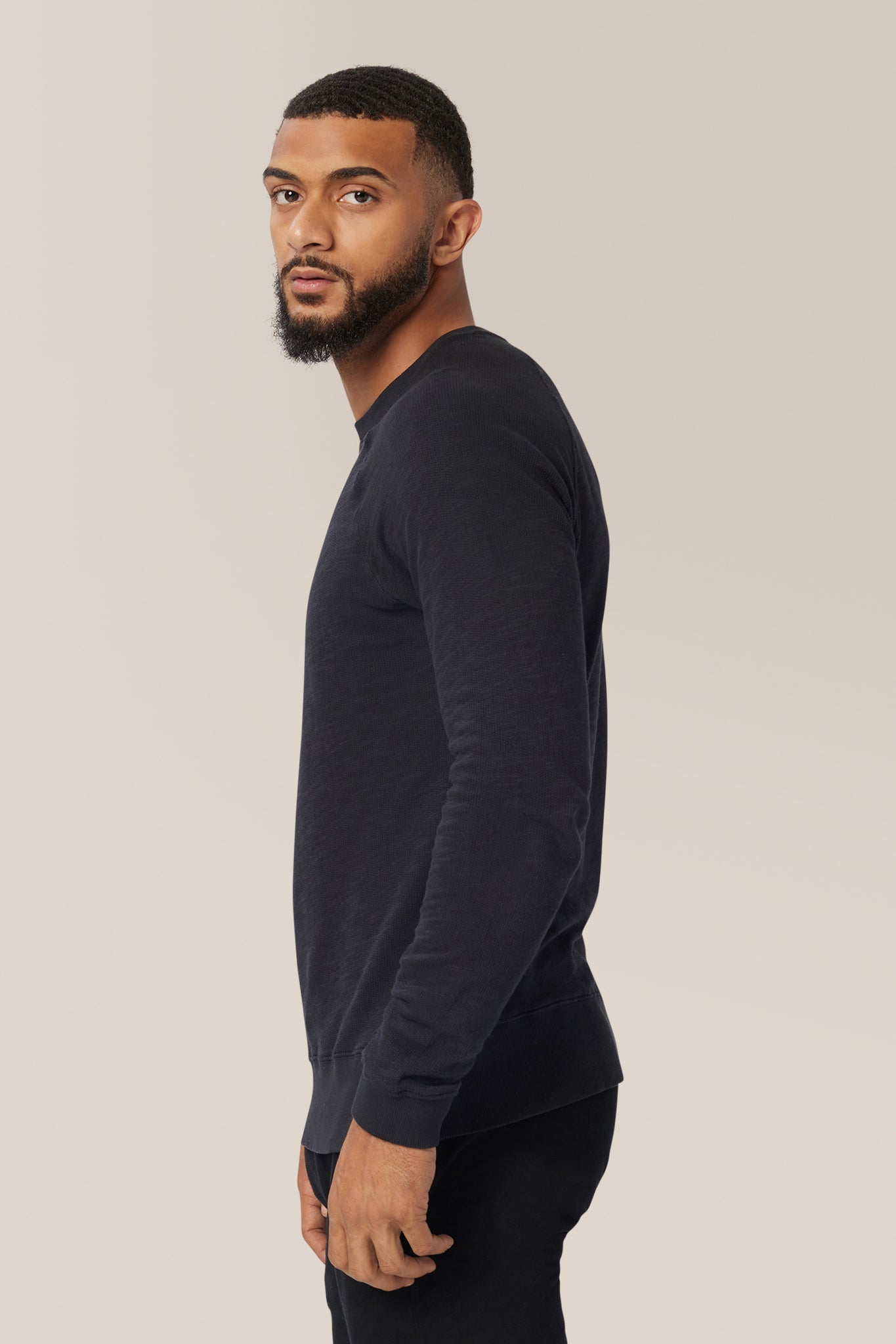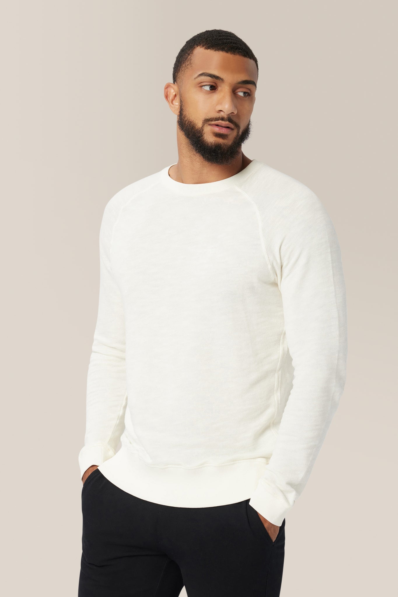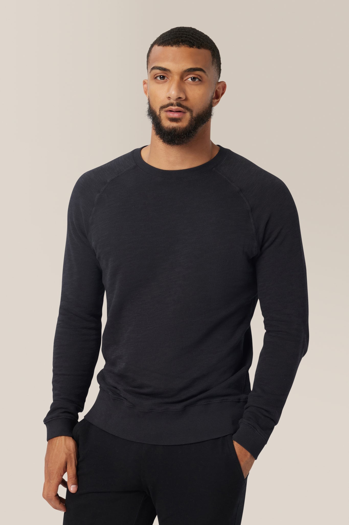 Stay warm in style with the Goodman Cotton Varsity Crew Tee. Crafted from ultra-soft French terry cotton, this retro-inspired tealightweight sweatshirt has raglan sleeves, ribbed cuffs, and hem for a sporty look. Perfect for year-round comfort.