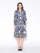 Floral Long Sleeve Lapel Collar Tie Belt Dress - Gracia D36953