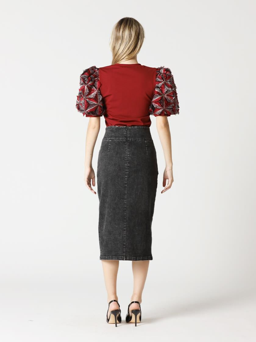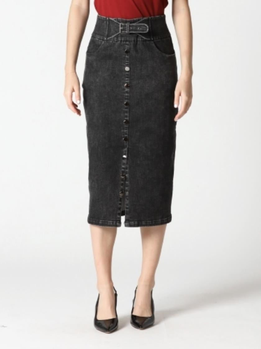 This black denim skirt is perfect for any occasion. Made from high-quality denim, it offers durability and comfort. The classic design makes it a versatile piece in any wardrobe. With its sleek and timeless style, this skirt is a must-have for any fashion lover.