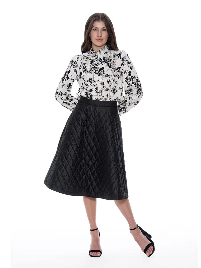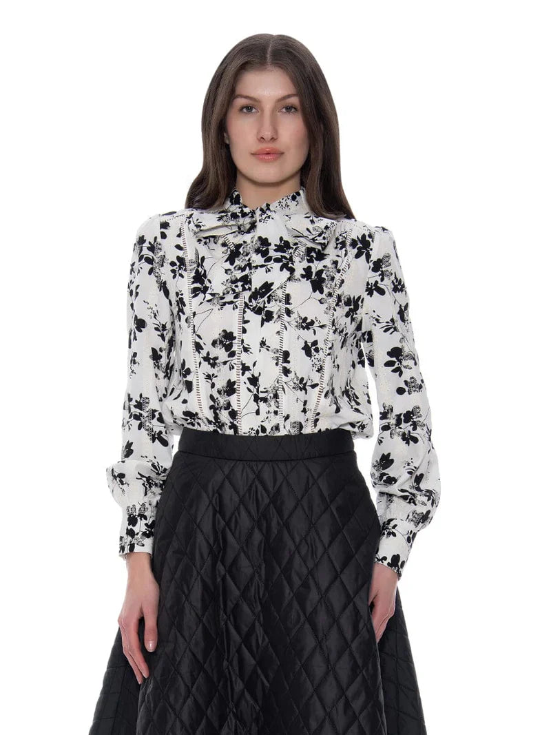 Garcia Floral Print Crochet Trim Tie-Neck Long Sleeve Top T35424
