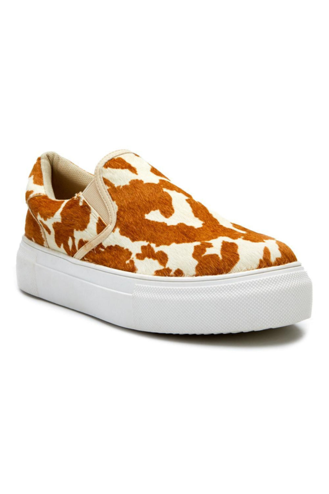 On-trend cow print from toe to heel amps up the sporty attitude of the Gradient slip-on sneaker set on a low platform. Fits true to size. Upper: cow hair. Outsole: man made. Heel height: 1.75 in/4.45 cm. Platform height: 1.75 in/4.45 cm. Textile lining. Padded insole. Slip on entry.
