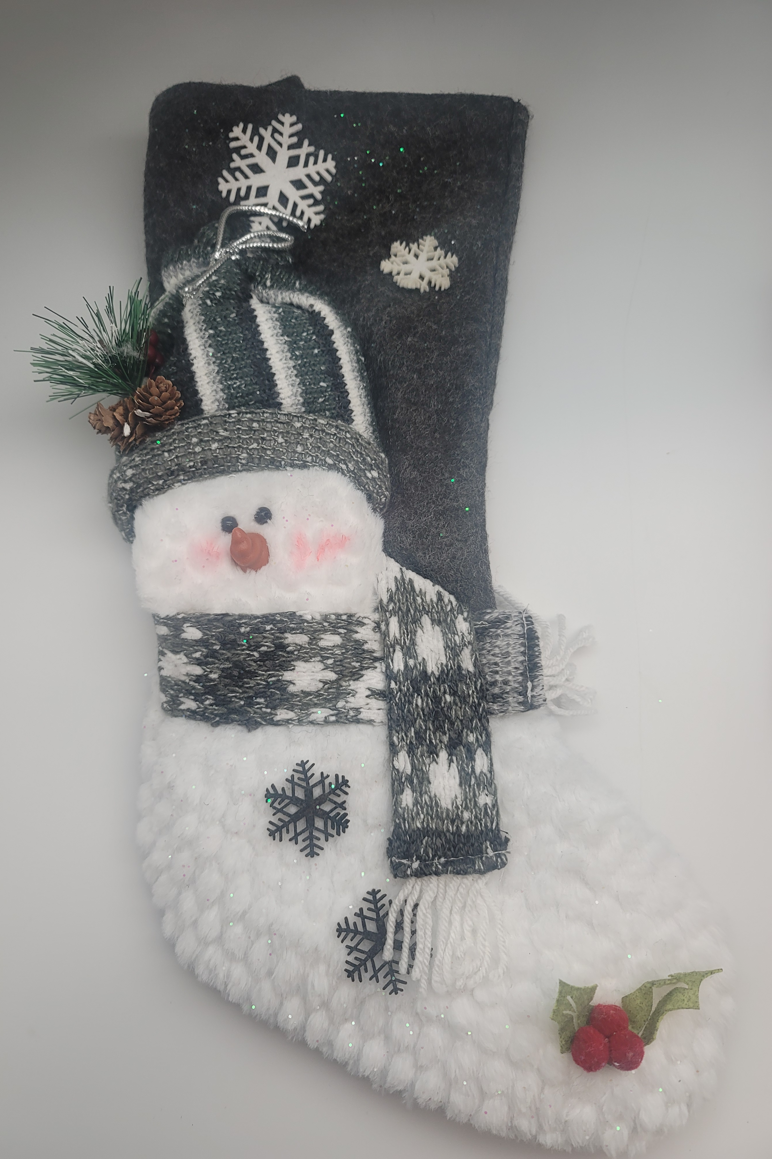 Gray snow man Christmas stocking