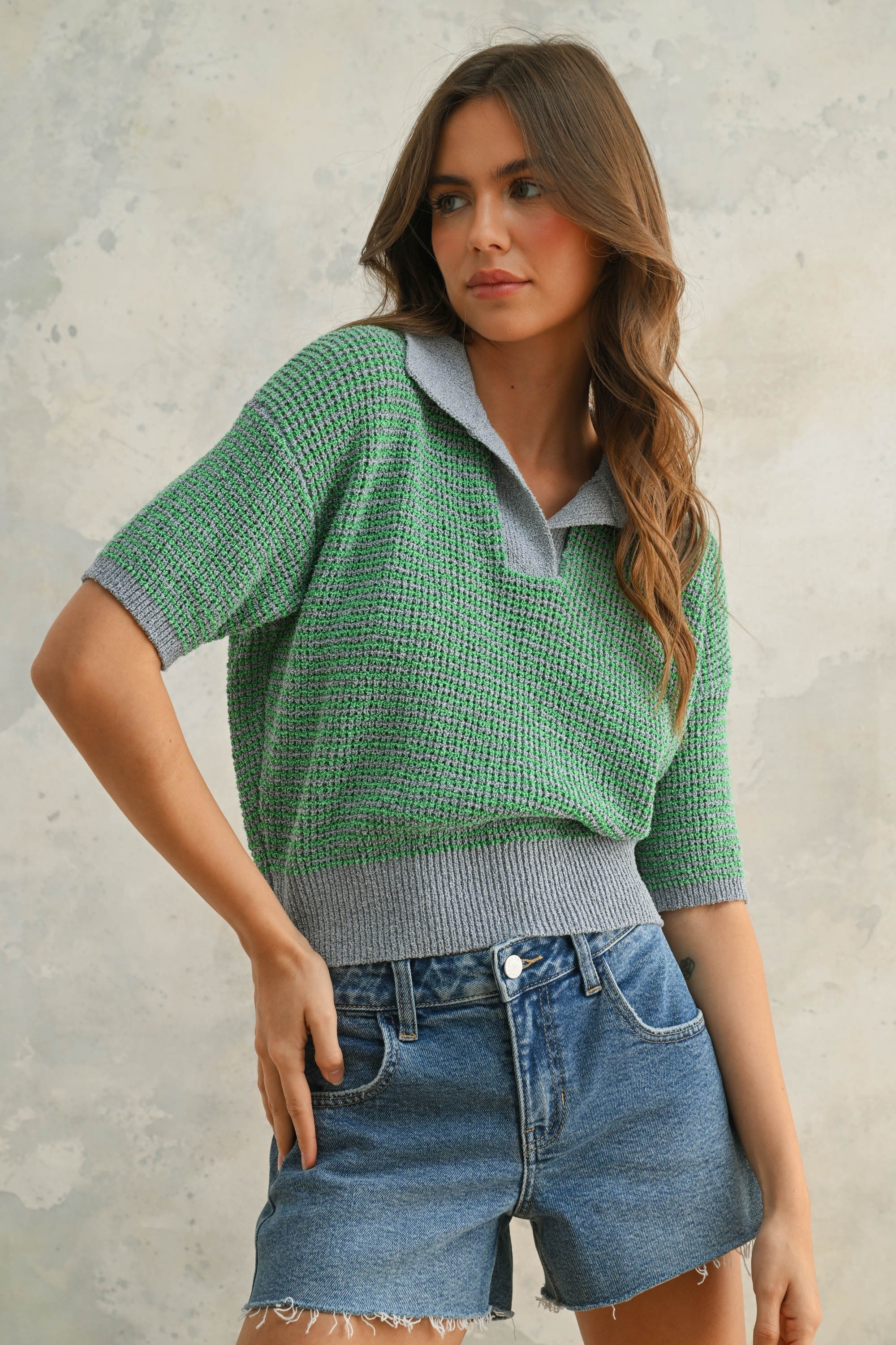 Green Collared Knit Top