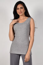 Sleeveless Grey Knit Top with Scoop Neck. See Matching Grey Knit Cover-Up (214479)