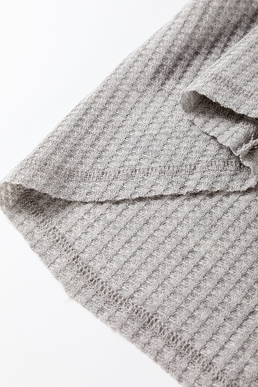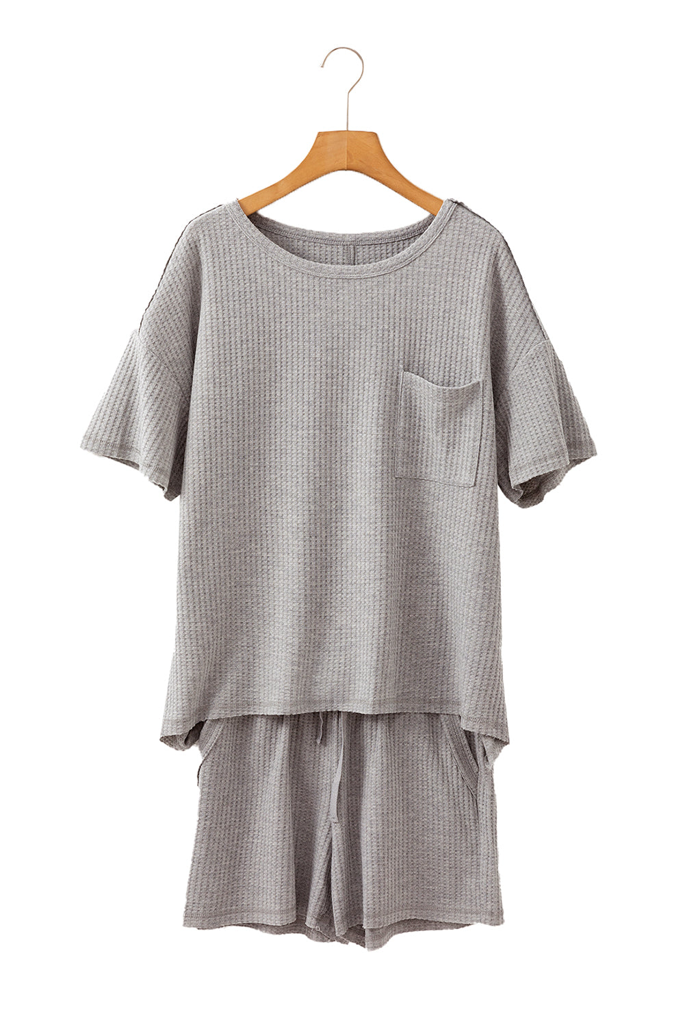 Slip into effortless style with our Gray Waffle Oversized Shorts + Tee Set. This chic two-piece set is made of comfy waffle knit fabric, adding texture to your look. The short-sleeve tee keeps it classic and cool, while the mix-and-match options make it endlessly versatile. Simplify your wardrobe and elevate your fashion game!