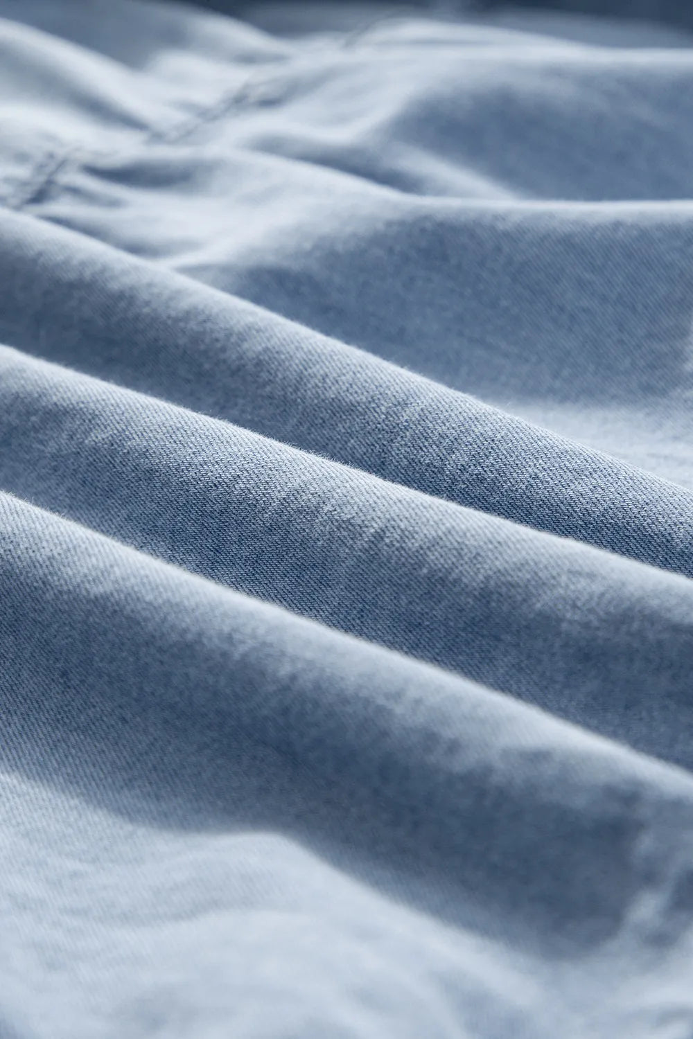 Hadley Ruffle Cap Sleeve Tiered A-line Denim Dress