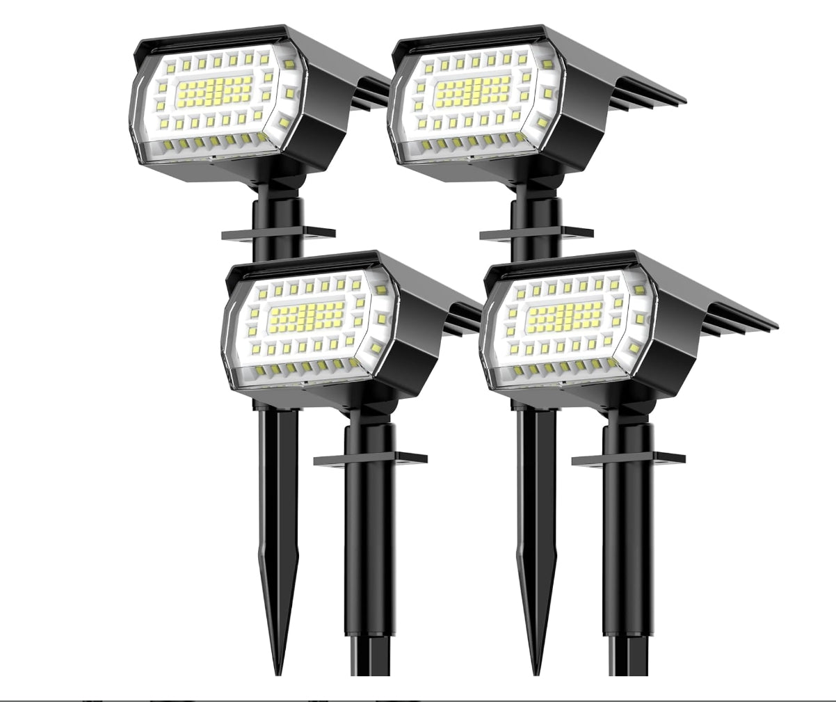 HAKOL 57-LED Solar Spotlights (4-Pack), 2-in-1, IP65 Waterproof, Cool White