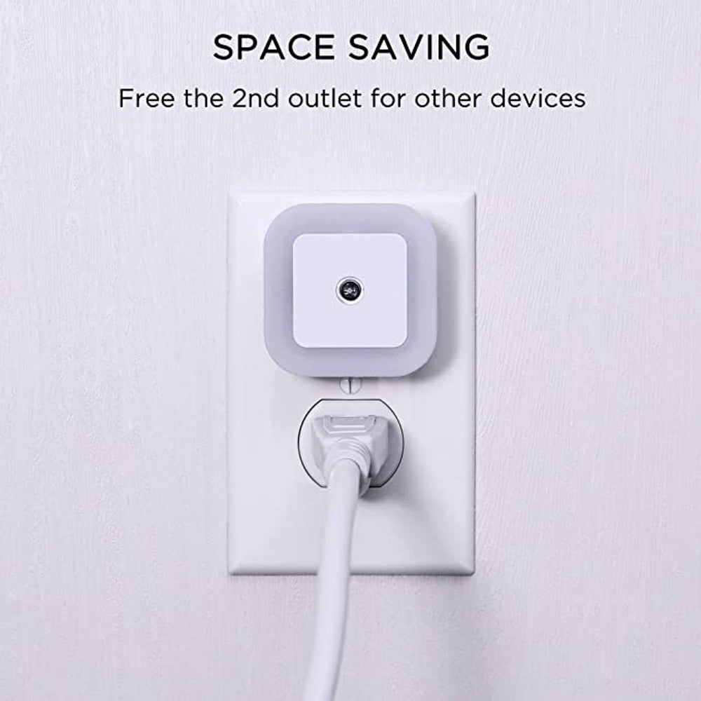 - Compact Design. Our plug in night light is designed keeping in mind the usefulness of a plug socket. This switchless light doesn’t block the space around the plug due to its compact size that also looks stunning for your home decor. Make your smart home smarter!