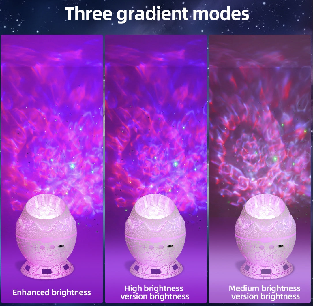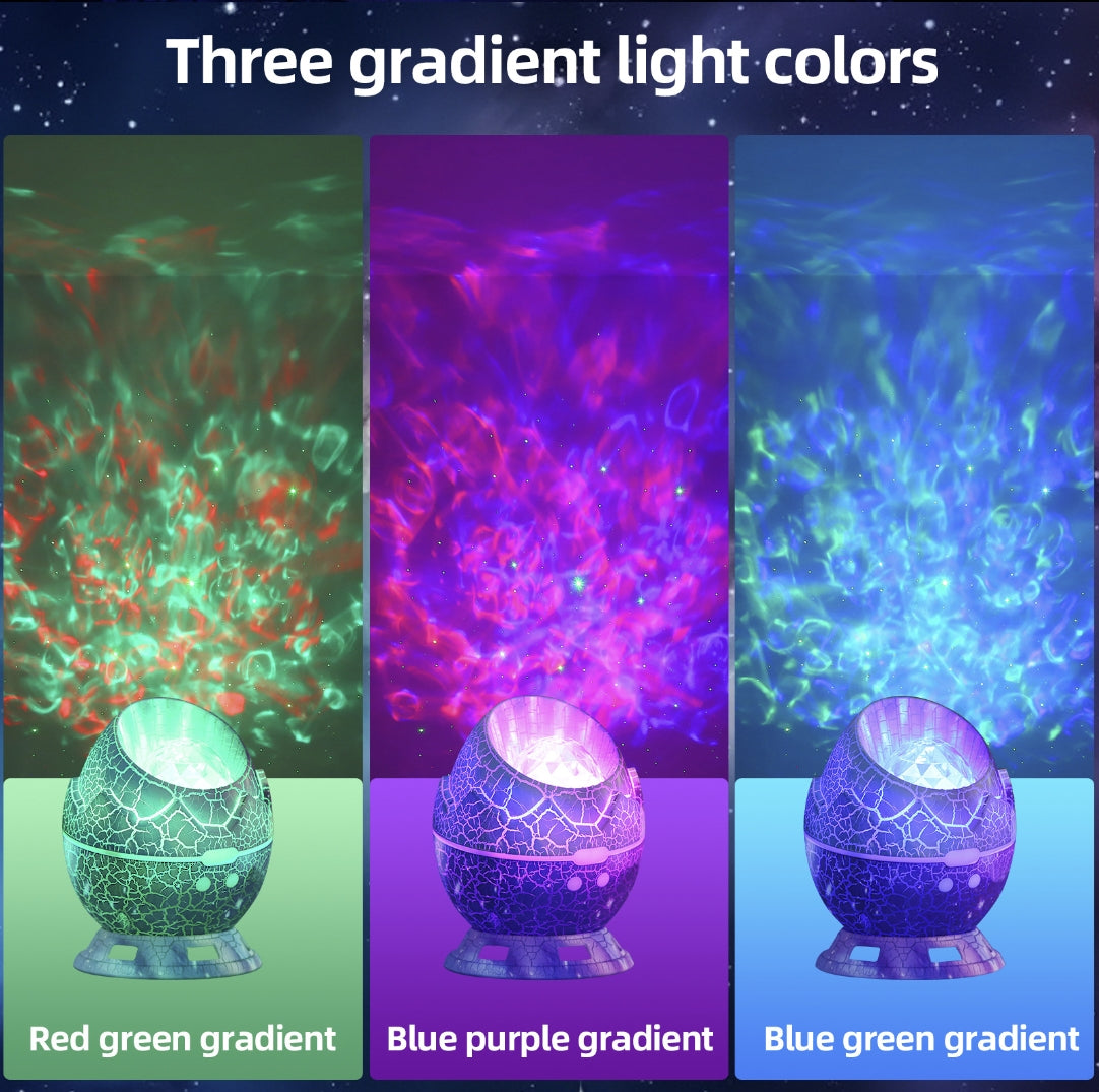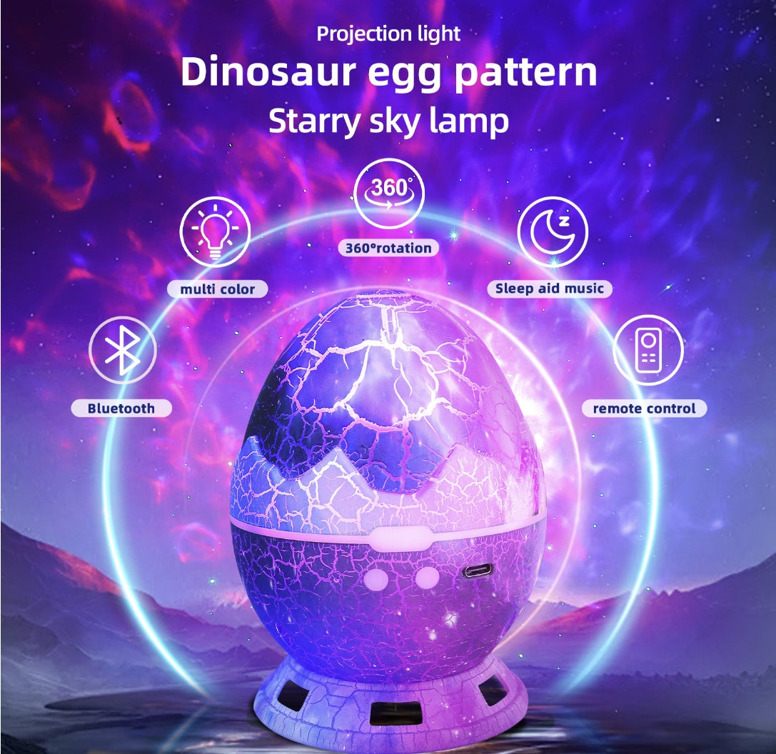 - White Noise Sound Machine: The night light projector includes 10 popular white noise sounds that are both relaxing and soothing while you try to fall asleep or meditate. Combining the gentle sounds from the white noise machine with the baby-friendly, mesmerizing RGB LED night light creates an unforgettable experience that will put anyone at ease. Both kids and adults can enjoy this fun and versatile dinosaur egg starry night light projector for every restful night sleep