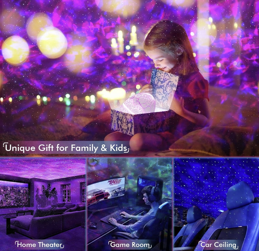 - 4-in-1 Star Projector Night Light: star projector combines a projector, nightlight lamp, white noise machine, and music player in one device, creating an extraordinary audio-visual experience. It features 14 vibrant colors that project shining stars and mesmerizing nebula clouds, bringing the vast starry night sky indoors for you and your kids to enjoy a peaceful galaxy in bedroom or kids room. Experience the beauty of space in the comfort, creativity, and celebration of your home