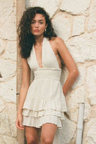 Halter Cut out dress is in for spring summer. Available in Sand and Black