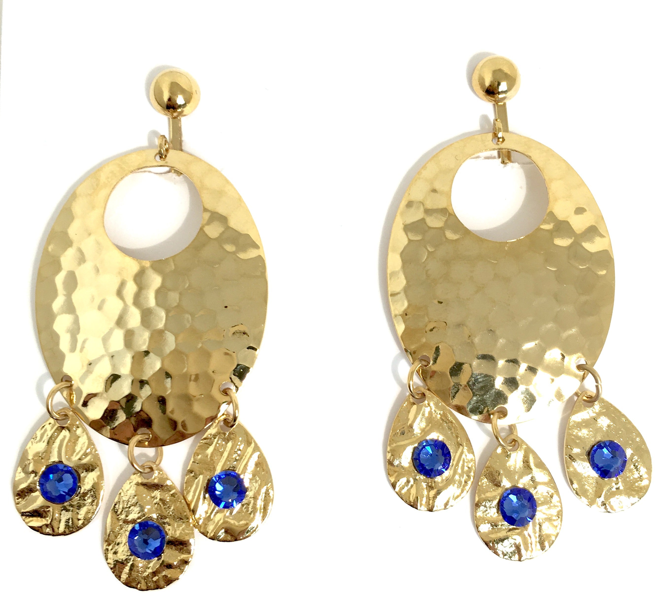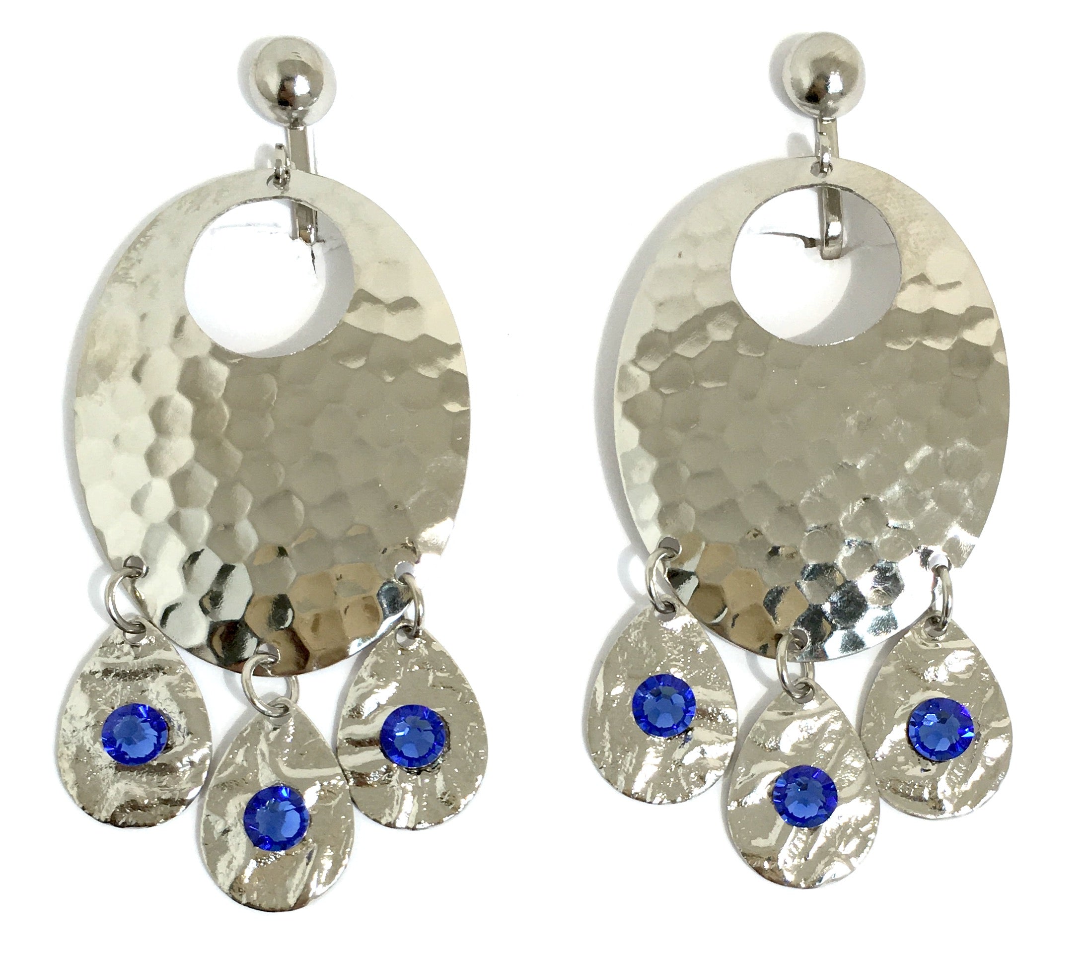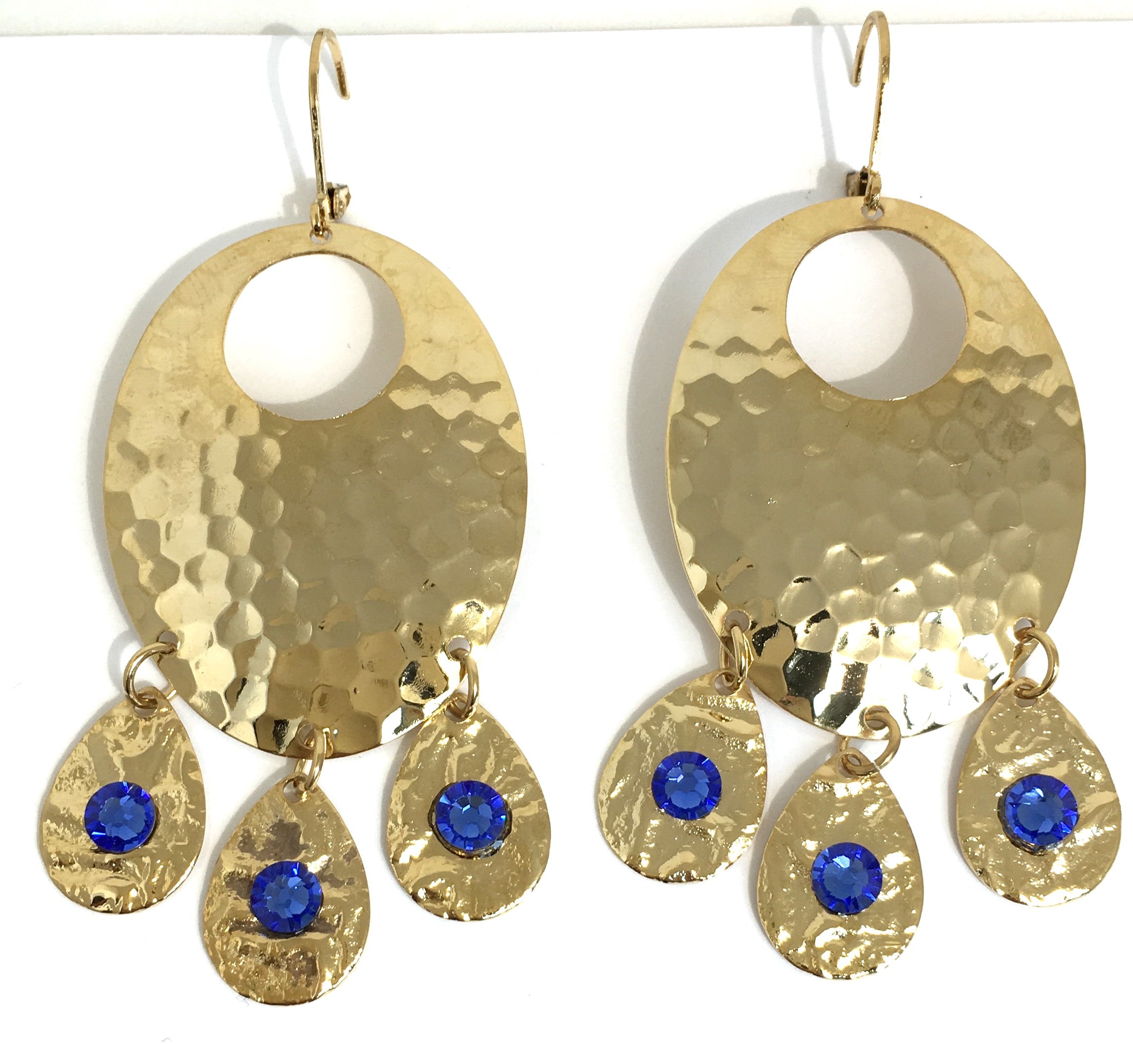 These Hammered Sapphire Chandelier Earrings are the perfect way to accessorize your look! Crafted from textured hammered metal, they are lightweight and feature a beautiful CZ birthstone design. Add these earrings to any outfit for a touch of elegance!