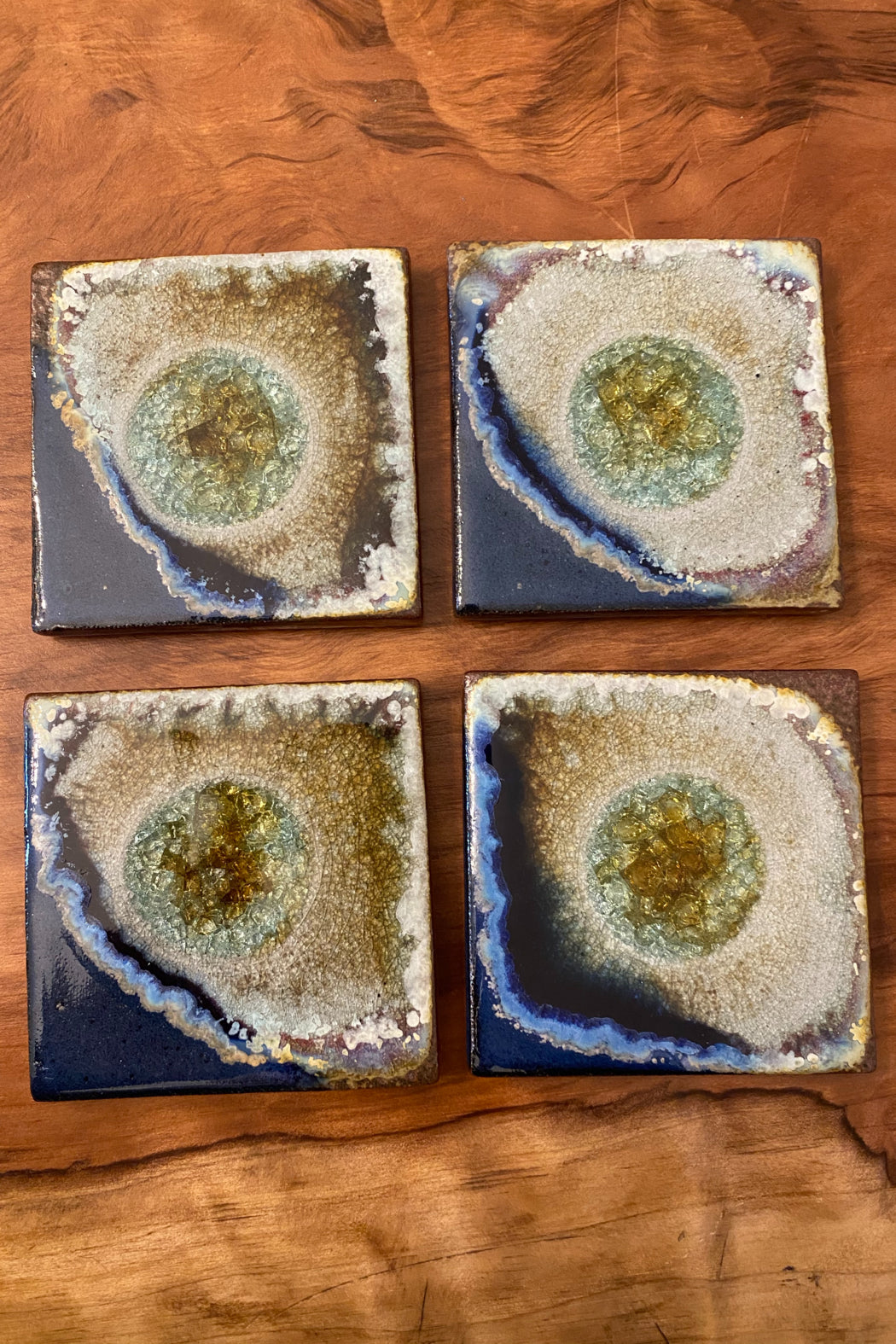 Set of 4 Handmade Pottery with Fused Glass Coaster