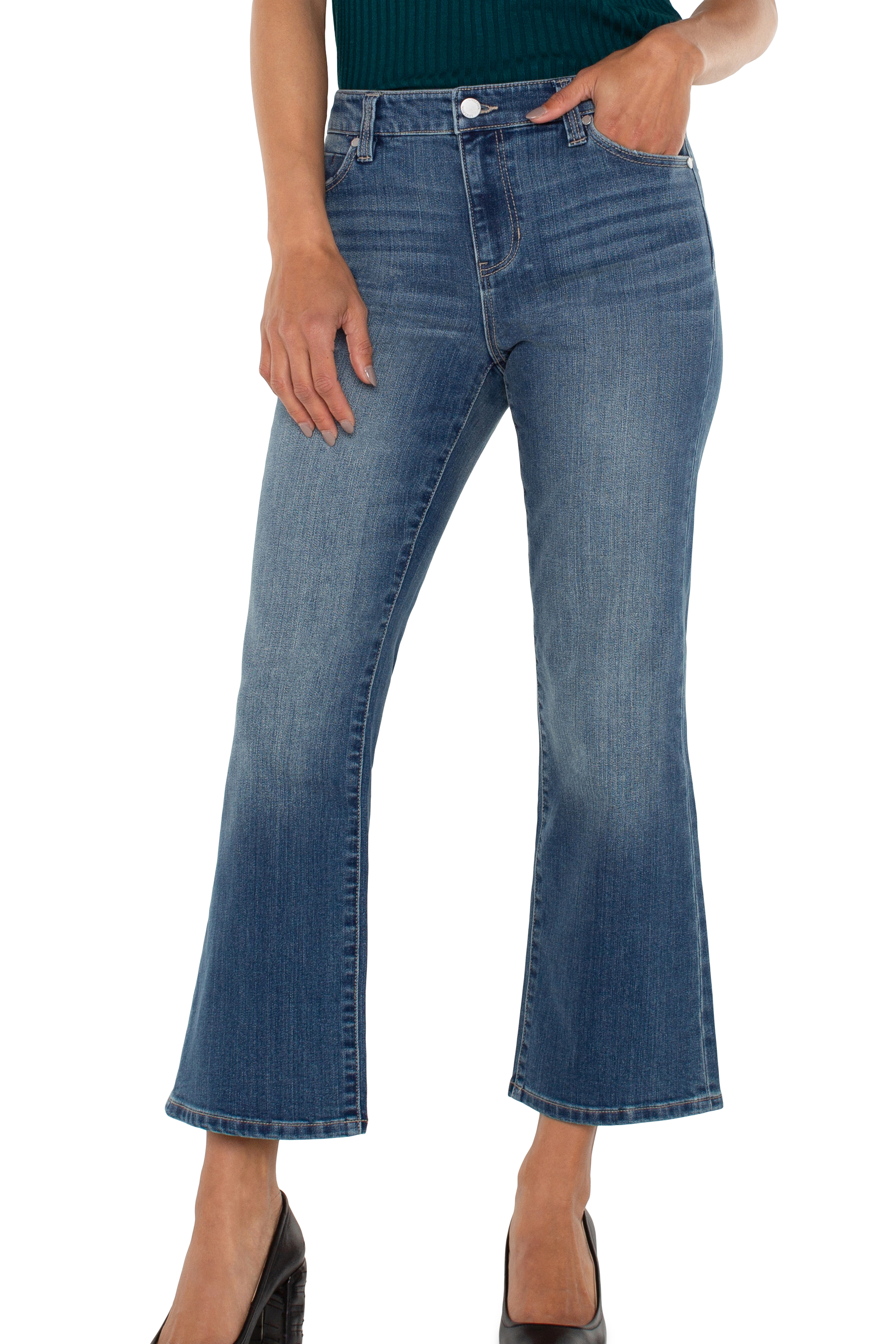 Elevate your wardrobe with the Hannah Crop Flare. Easily dress these up or down for any occasion! This denim is crafted with "CiCLO" polyester. An additive technology that allows synthetic fibers to biodegrade like natural fibers.