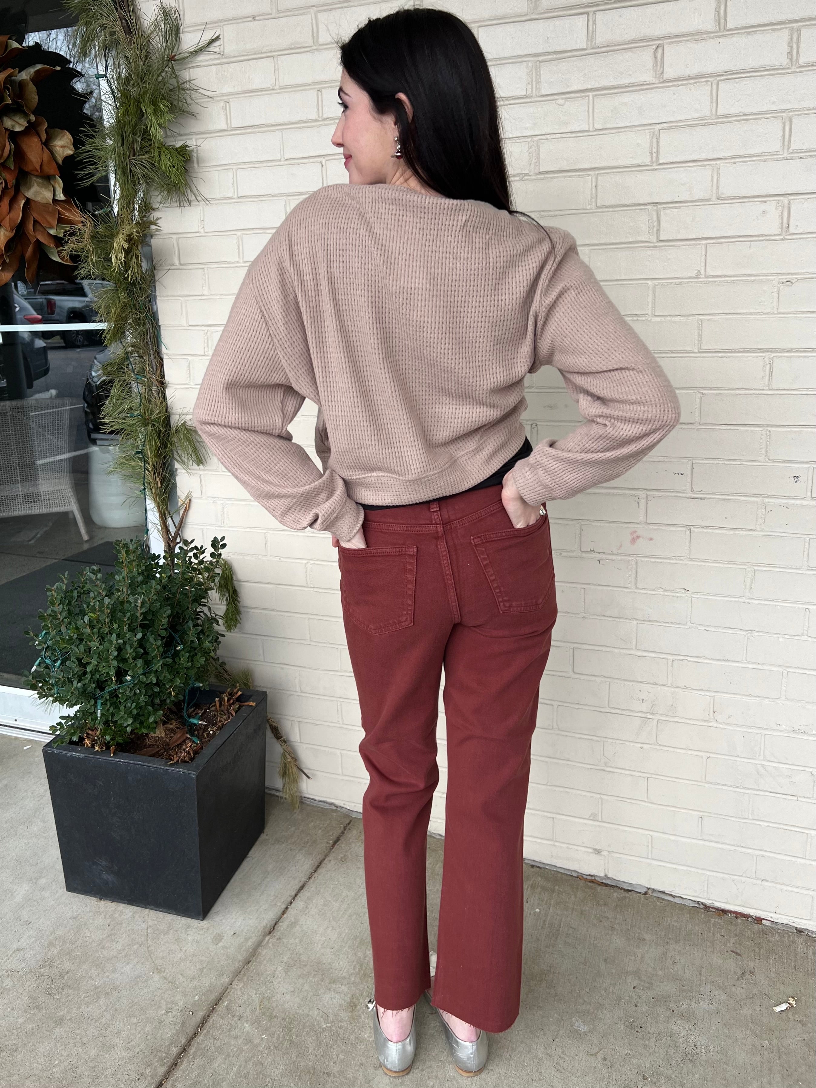 Get ready to slay in our Hannah Crop Straight Jeans! With a relaxed straight fit and ankle crop in a bold burgundy color, these jeans will elevate any outfit. Whether you're going out or staying in, these jeans are the perfect choice for a stylish and comfortable look.