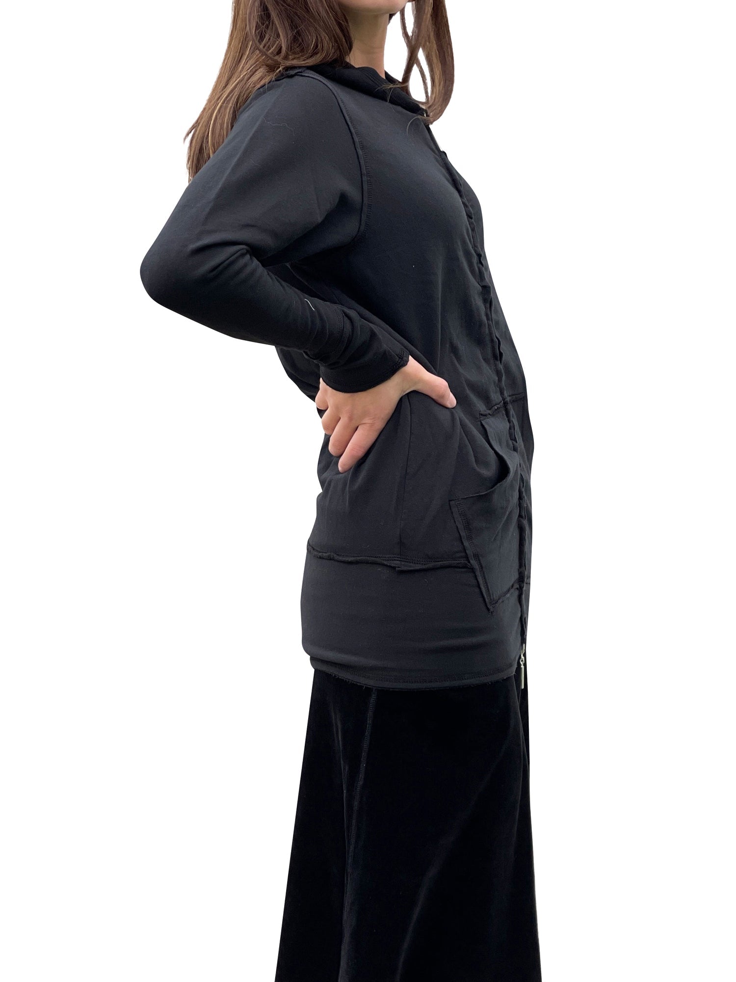 Calling all cozy queens and street style slayers! This Hardtail long black hoodie is your new bestie, ready to conquer the world with comfy confidence. It's not just any sweatshirt – it's a statement piece with double the zippers, double the fun!
