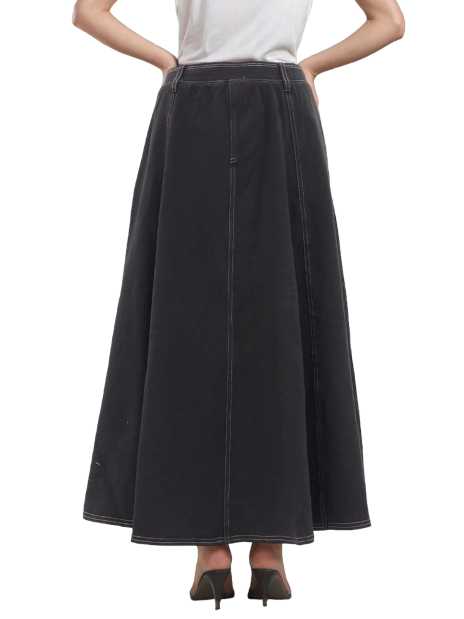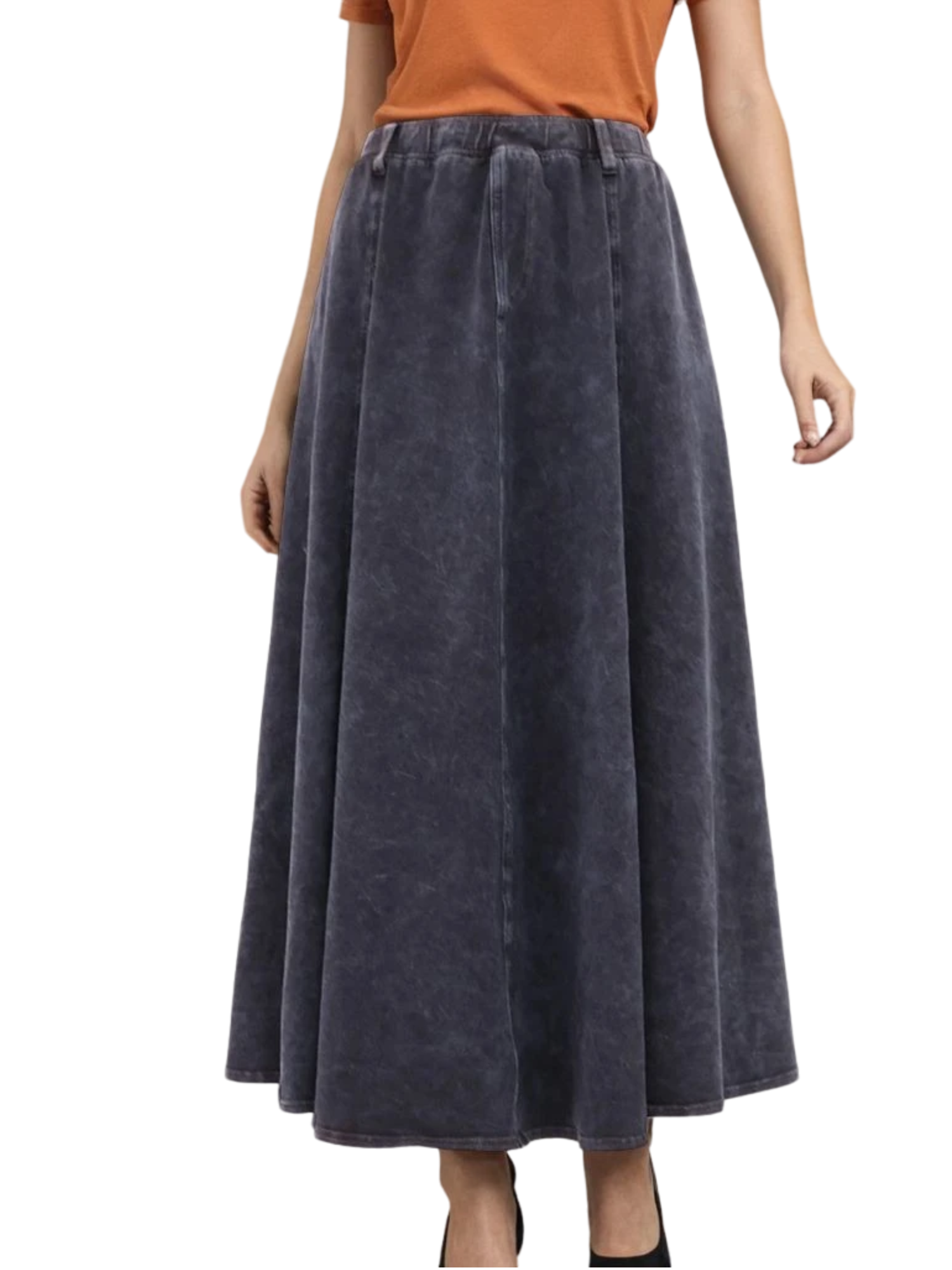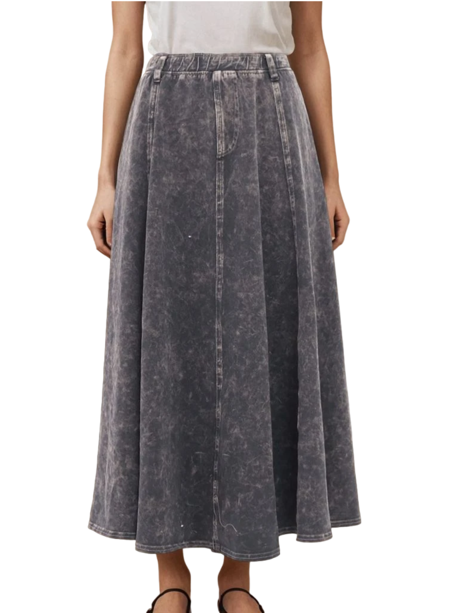 Hard Tail Jean Panel Pocket Midi Skirt (Style WJ-132)