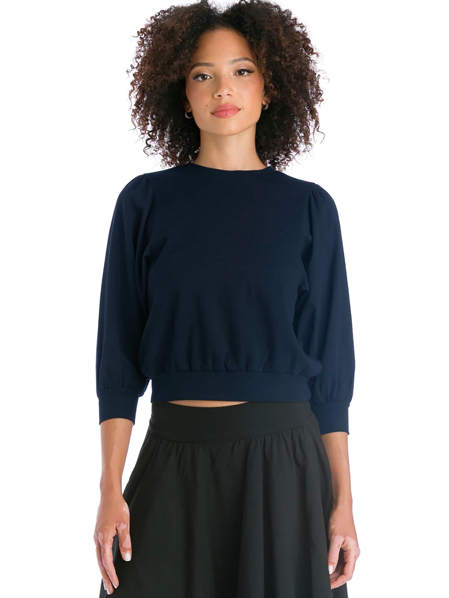 Click "Add to cart" and get ready to experience the cozy chic magic of the Hard Tail Crewneck Cotton Top with 3/4 Length Puff Sleeves!