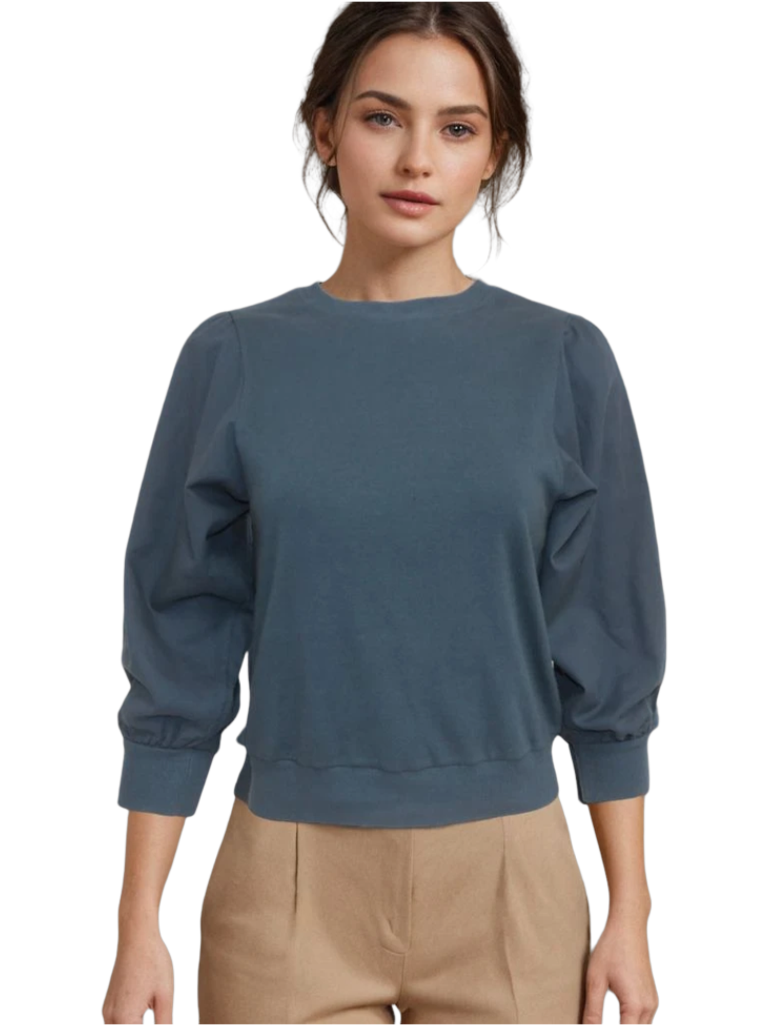 Hard Tail's Cozy Chic Dream: The Crewneck Cotton Top with Puff Sleeves