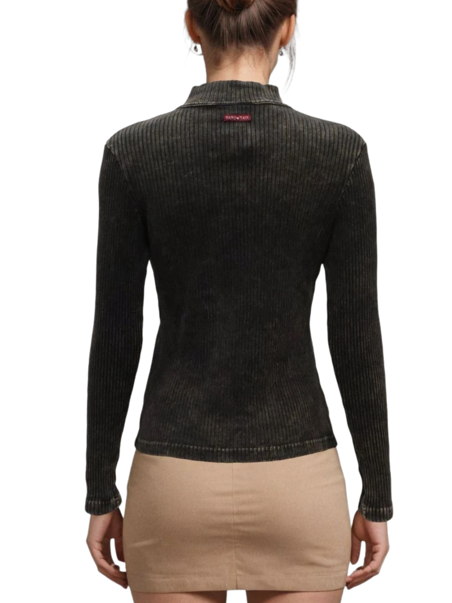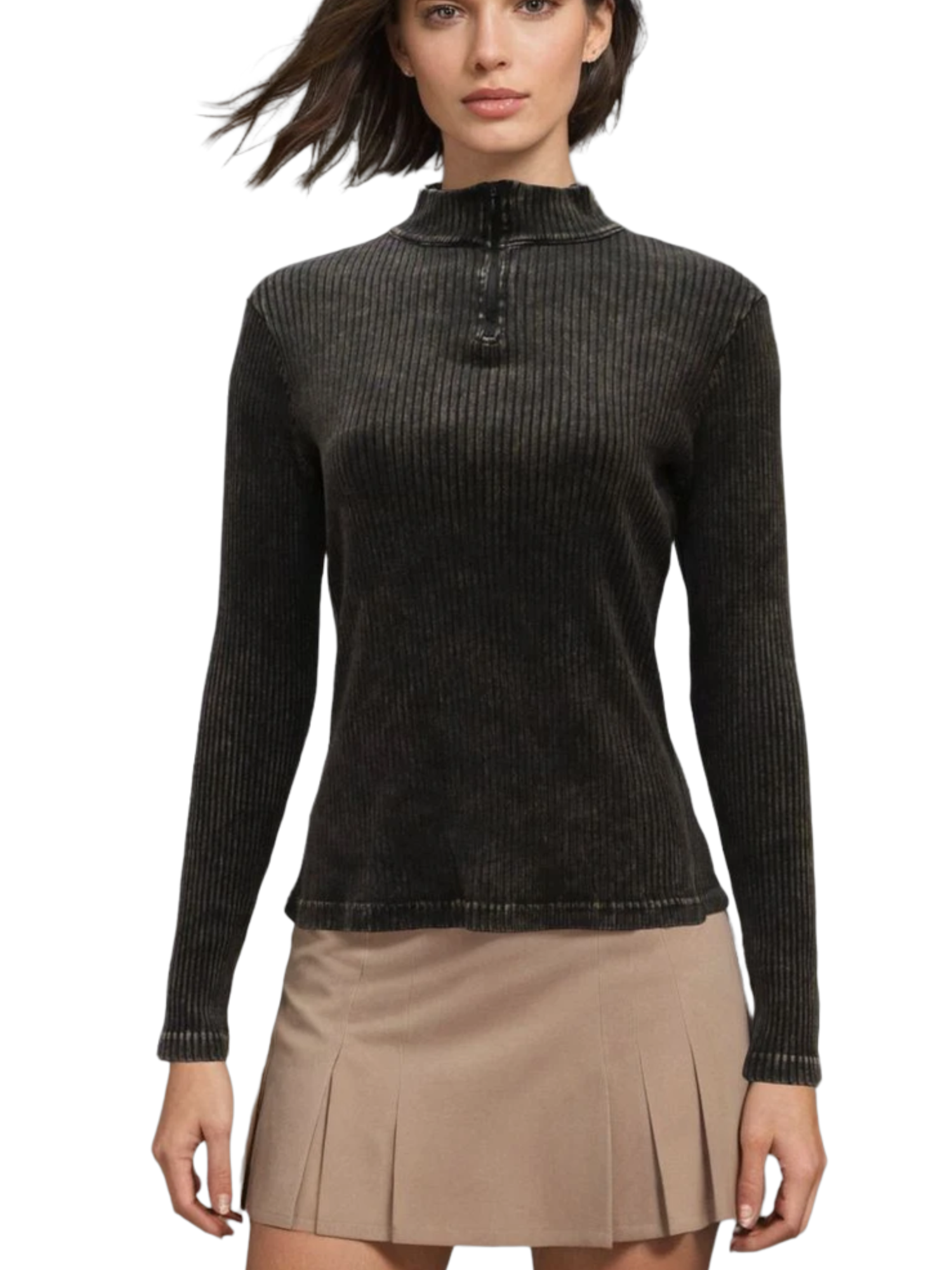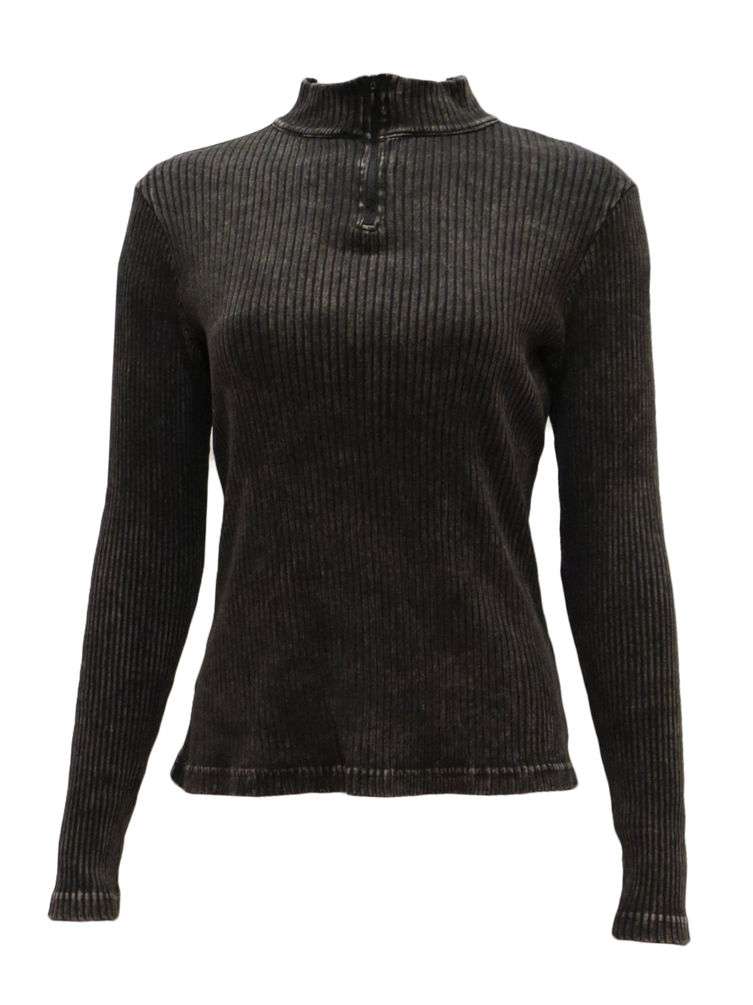Hard Tail's Textural Dream: The Wide Ribbed Half Zip Mock Neck Top