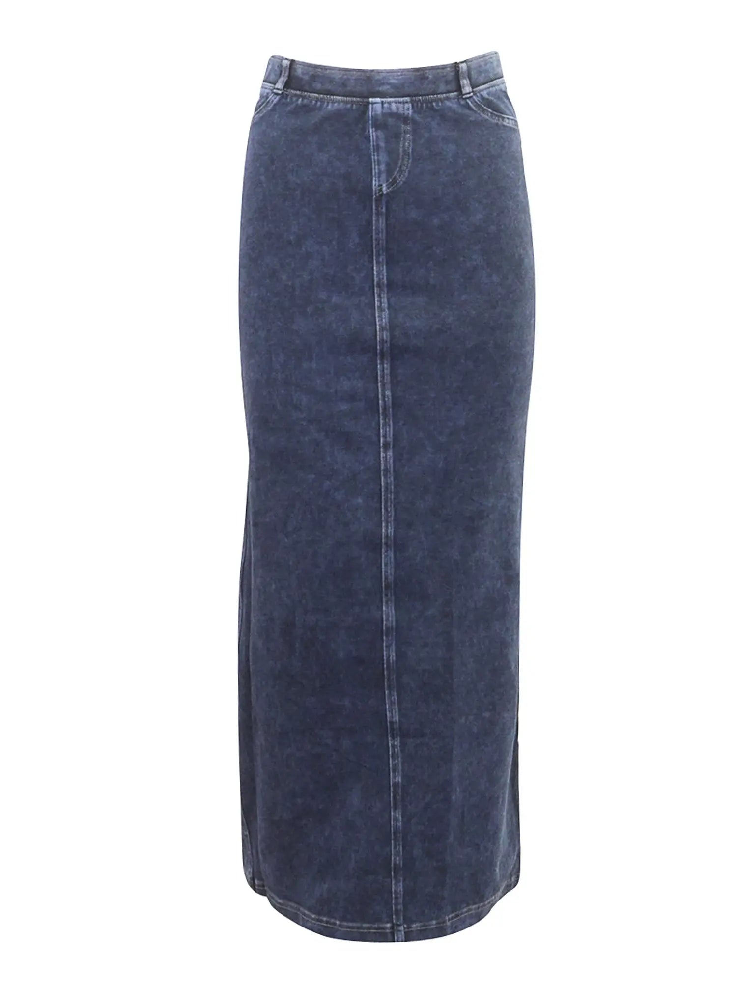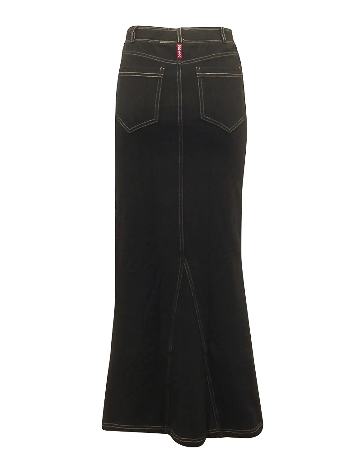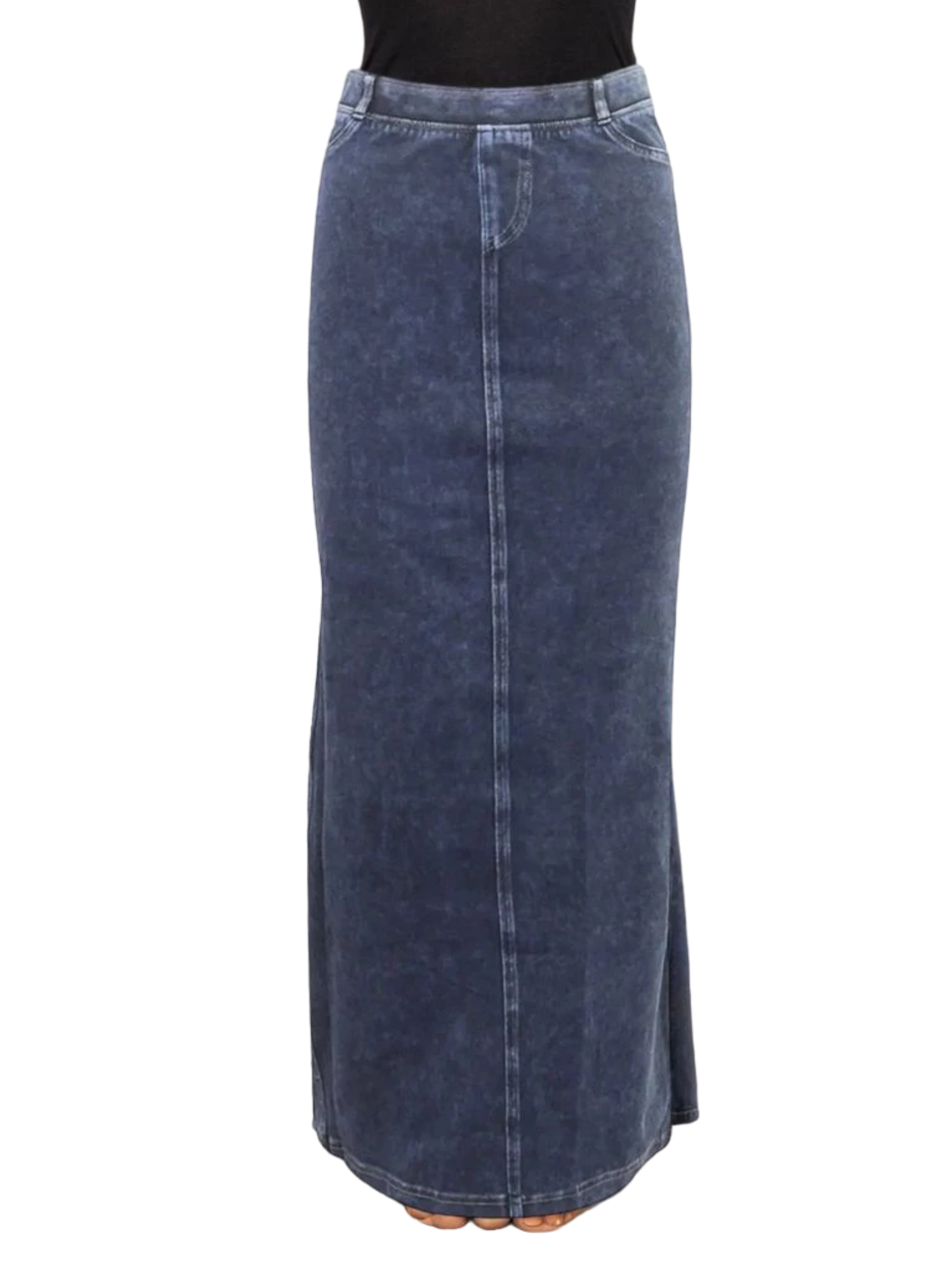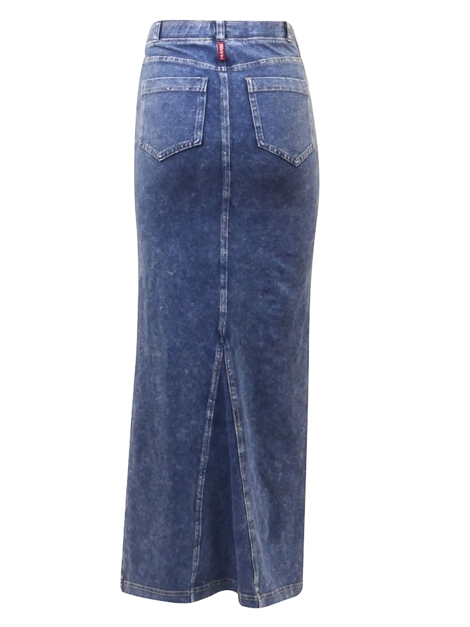 Hard Tail Long Denim Closed Slit Skirt (Style WJ-114)