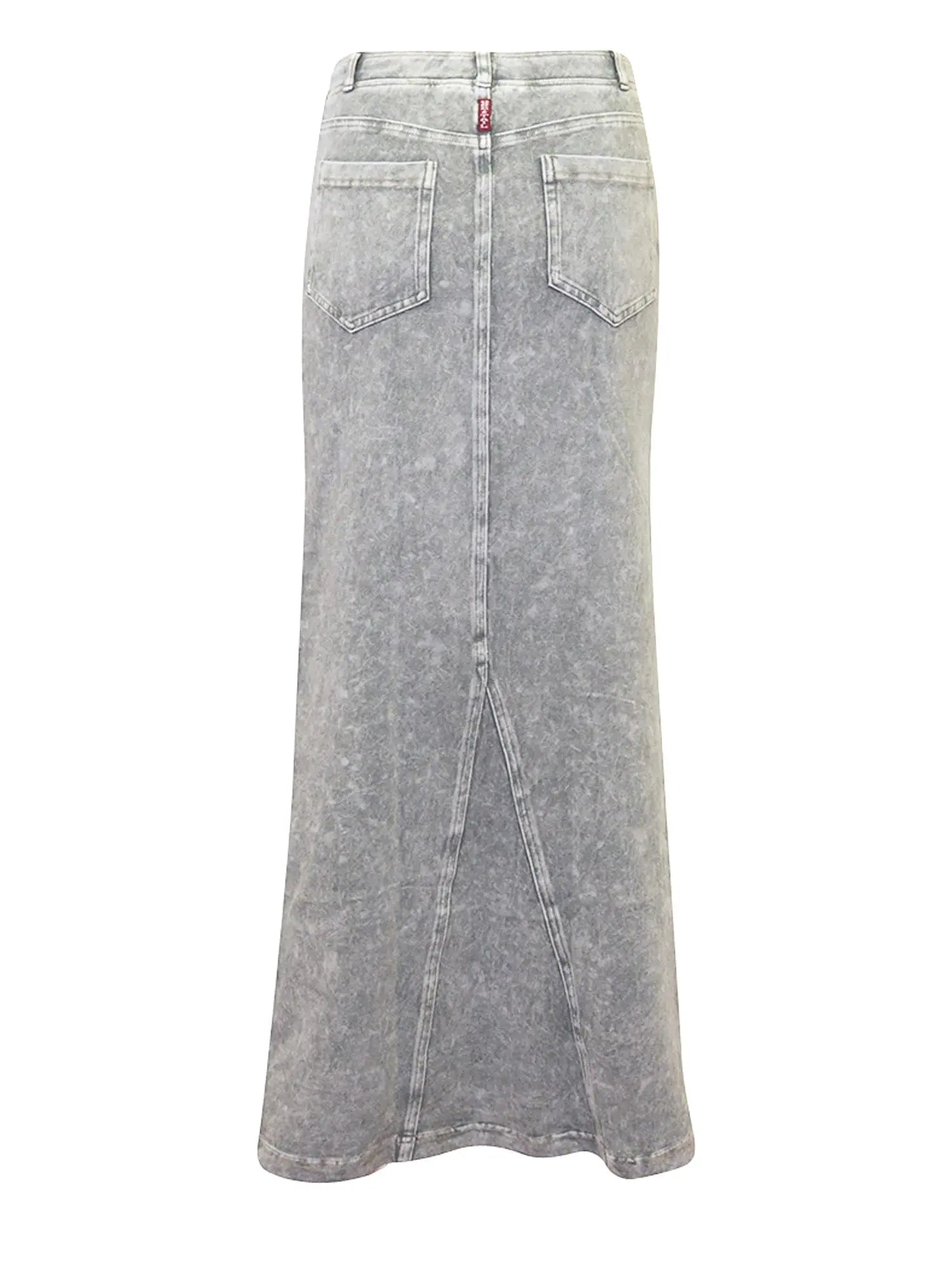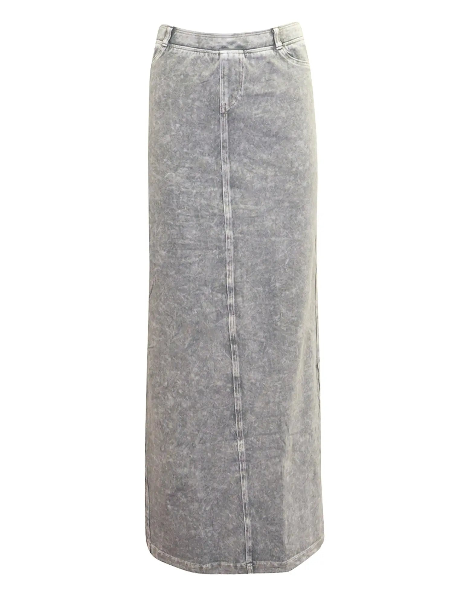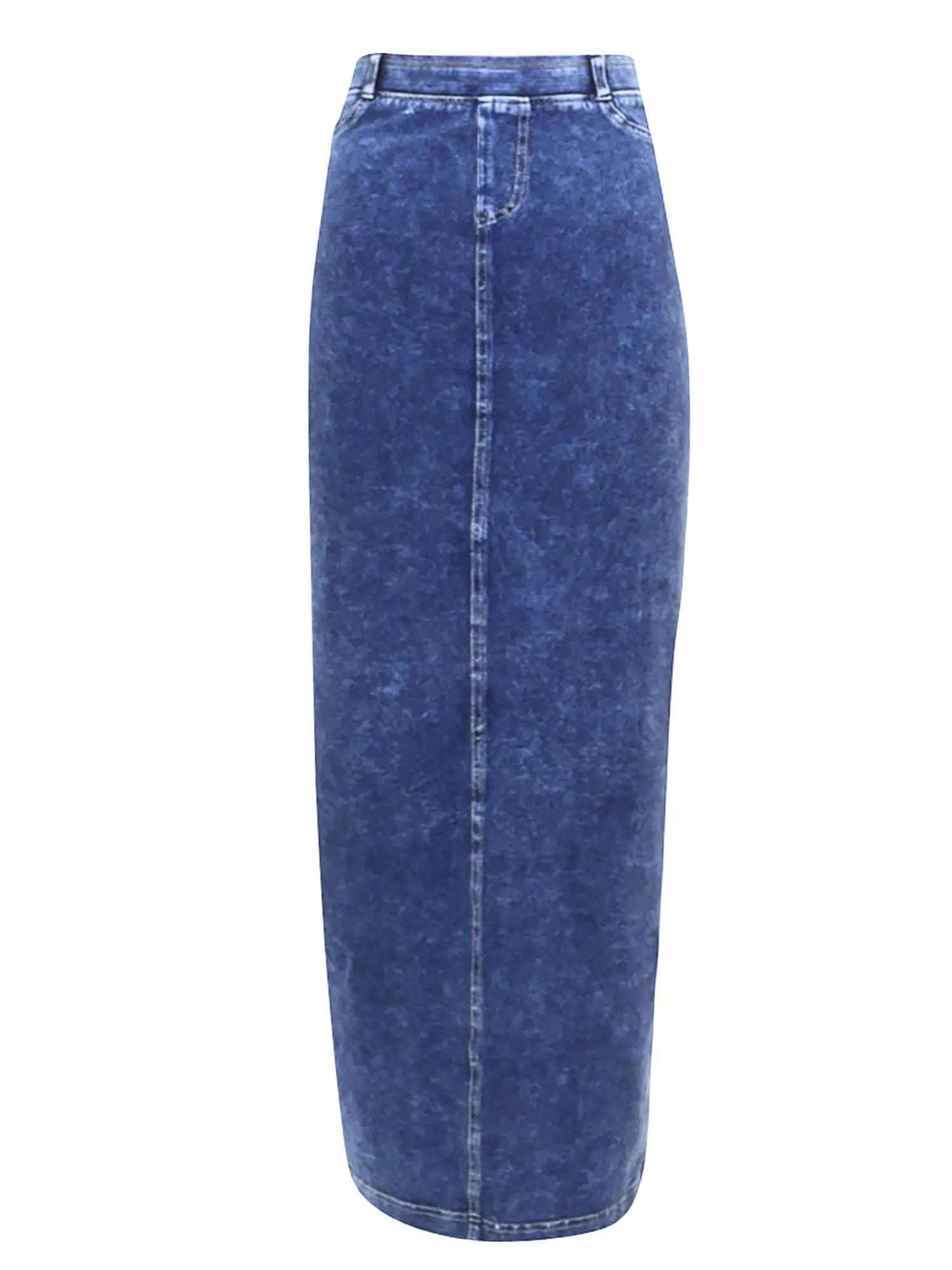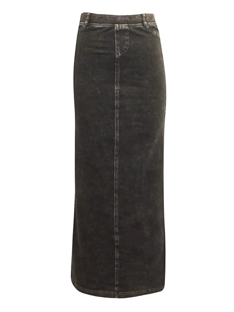 Hard Tail Long Denim Closed Slit Skirt (Style WJ-114)