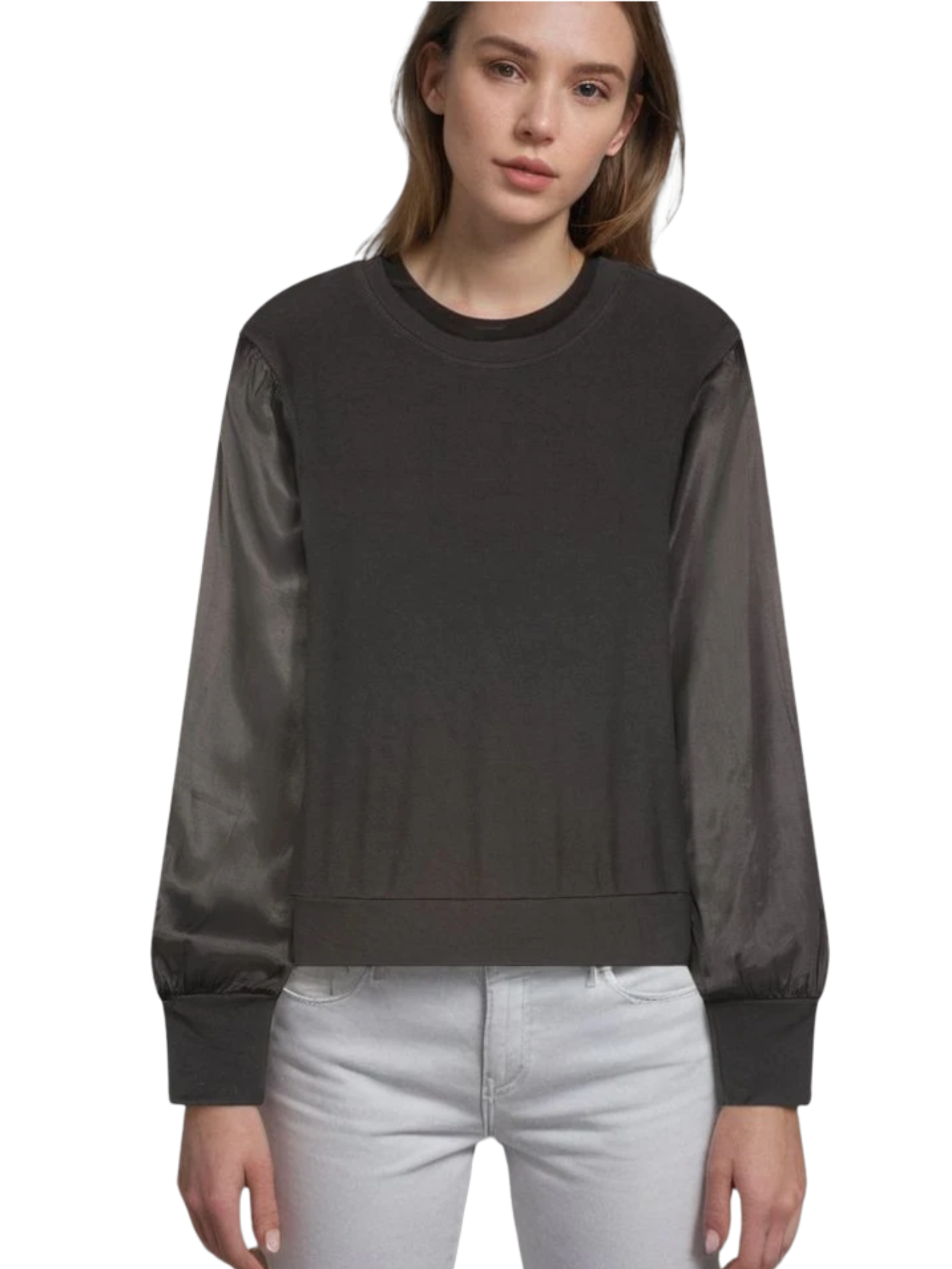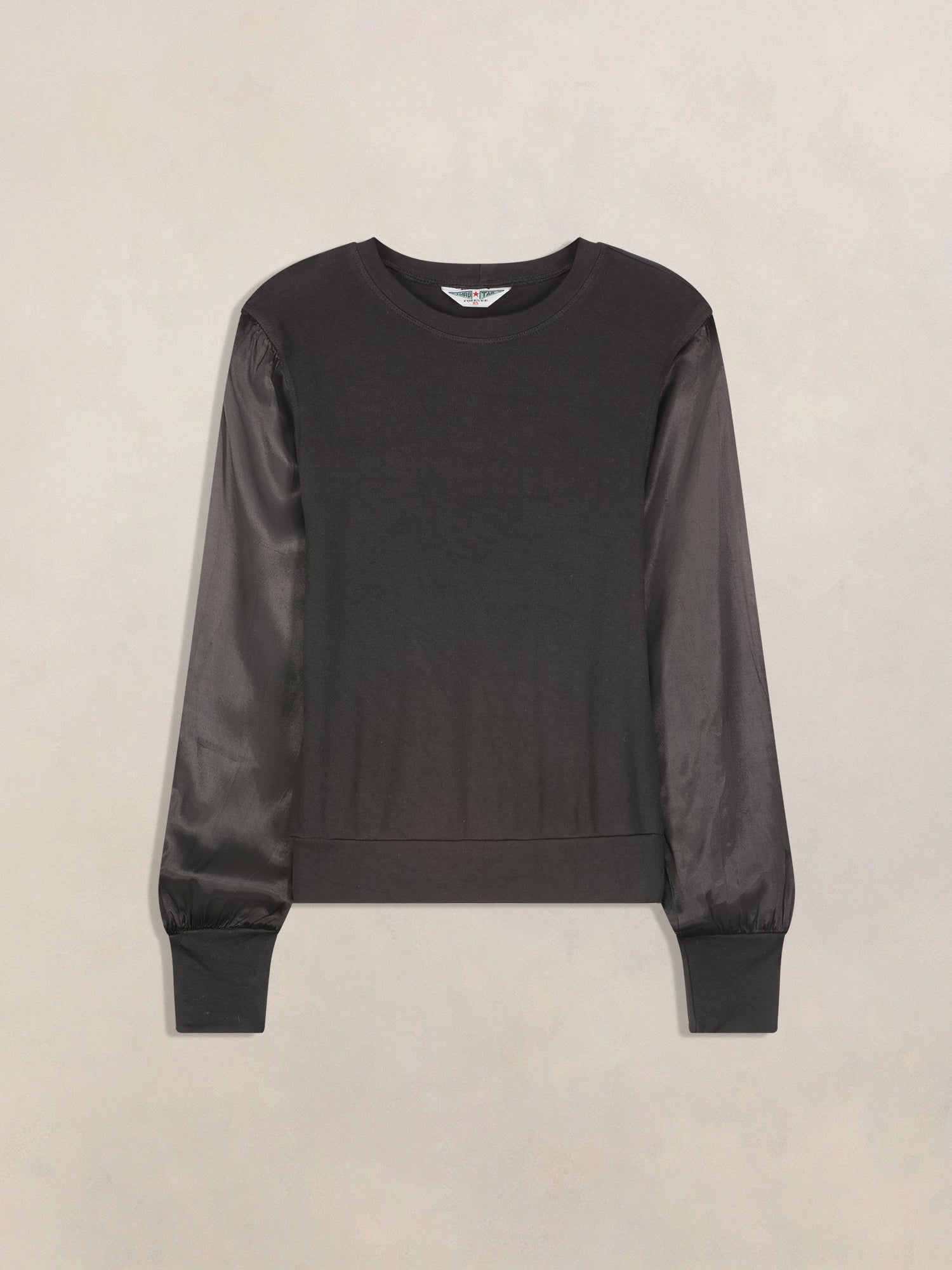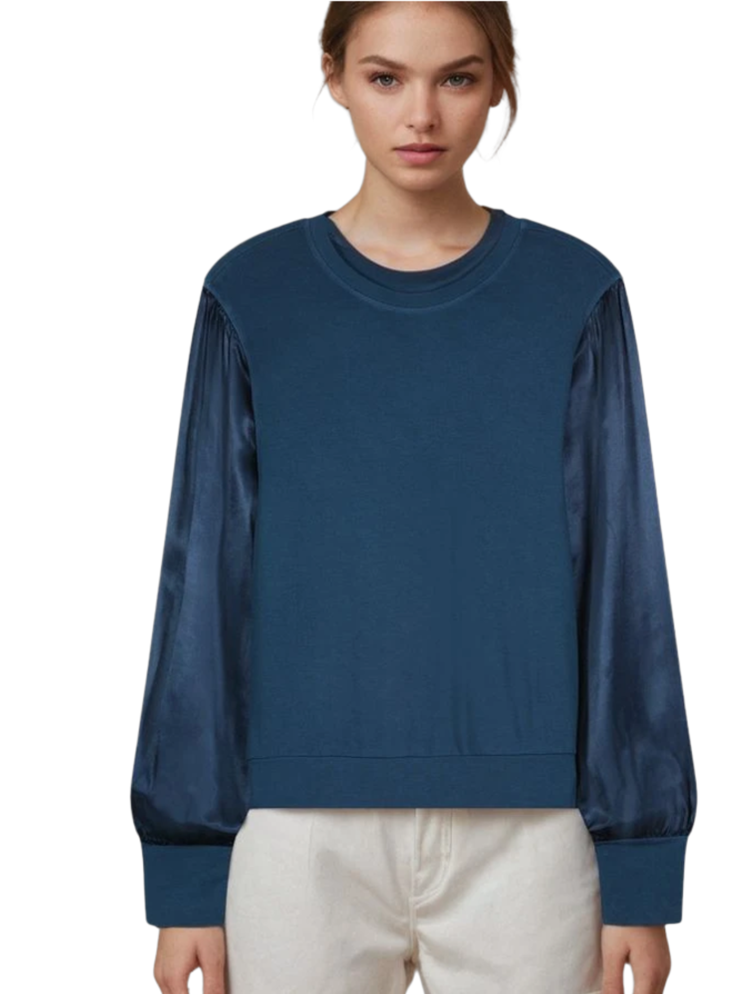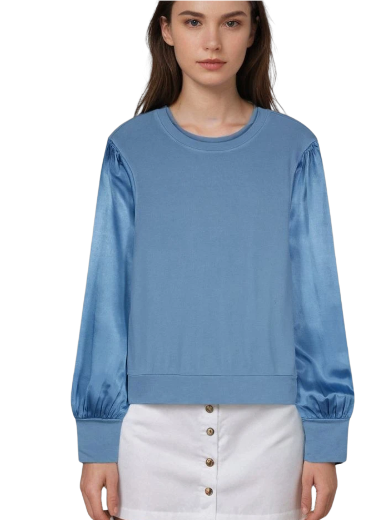 Embrace Bold Comfort Meets Playful Chic: Hard Tail's Satin Bubble Sleeve Crewneck