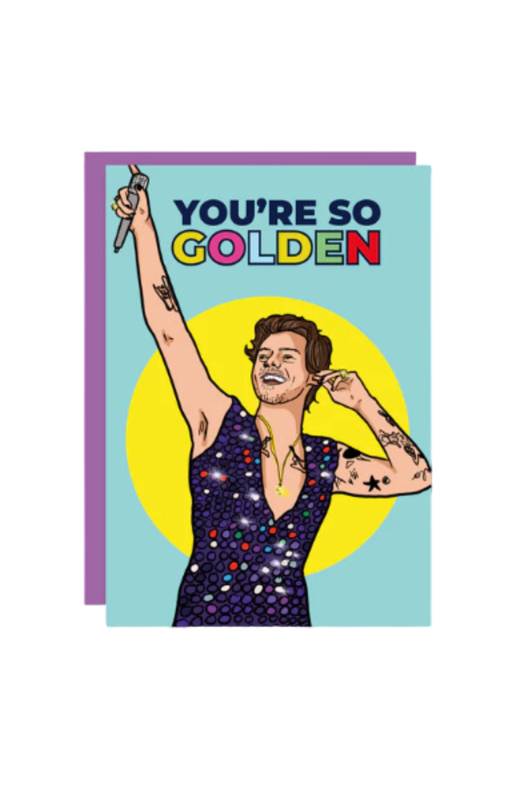 You're so golden. Give your golden girl or loved ones the gift of happiness with this adorable Harry Golden Card — a Harry Styles-themed card perfect for an anniversary, birthday, congrats, or just because of the moment! Also, packaged in a clear protective sleeve.