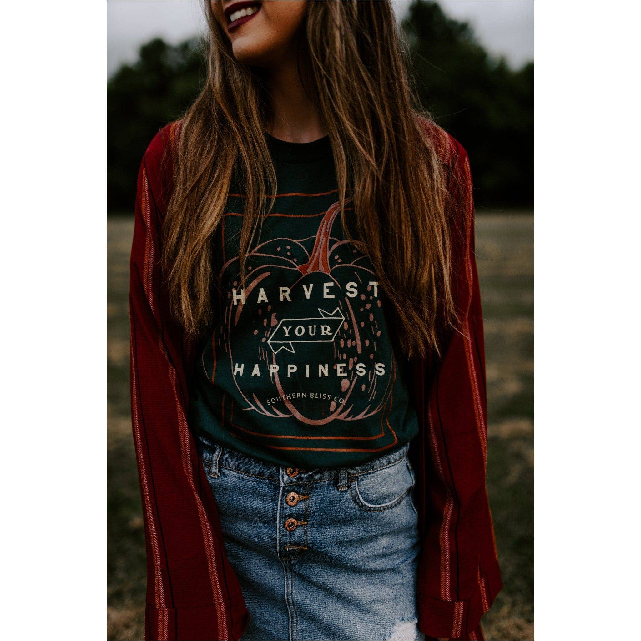 This graphic tshirt in hunter green is so cute for fall! Harvest YOUR happiness this fall!
