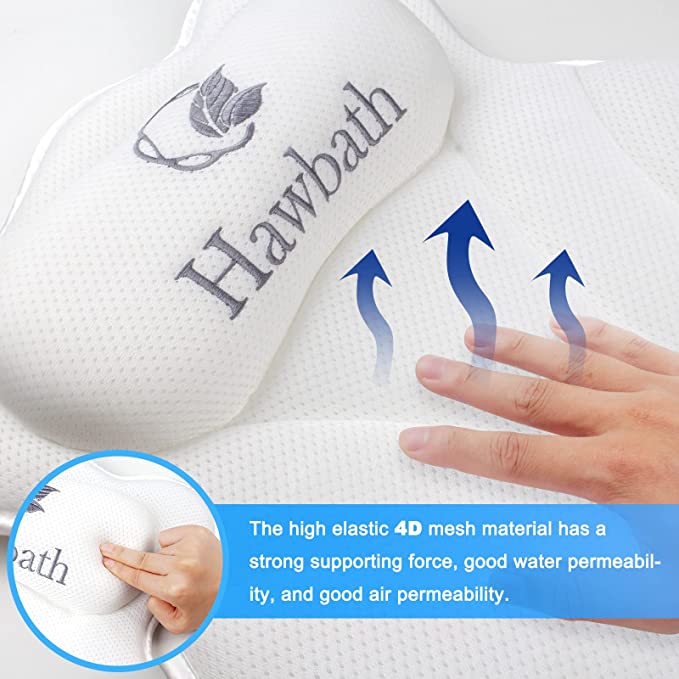 - 4D Air-mesh Technology: Hawbath bathtub pillow for soaking tub is made of comfortable and breathable 4D Air mesh fabric material. It is soft, breathable. This material can ensure that water and air pass through the pillow more smoothly during use. When bathing, you can enjoy the ultimate relaxing, feel the comfort of the SPA bath pillow, and feel the warmth of the bathing time