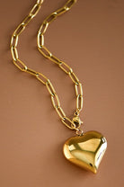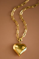 18K Gold Dipped Stainless Steel Paperclip Chain Necklace with Heart Pendant. The necklace is hypoallergenic, waterproof, fade-resistant, and tarnish-free, ensuring its beauty lasts for years. Perfect for everyday wear or special occasions. Paperclip Chain Necklace | Chain Link Necklace | Heart Charm Necklace | Real Gold Dipped Necklace | Real Gold Plated Necklace | Waterproof & Sweatproof Necklace | Layering Necklace | Simple Gold Necklace
