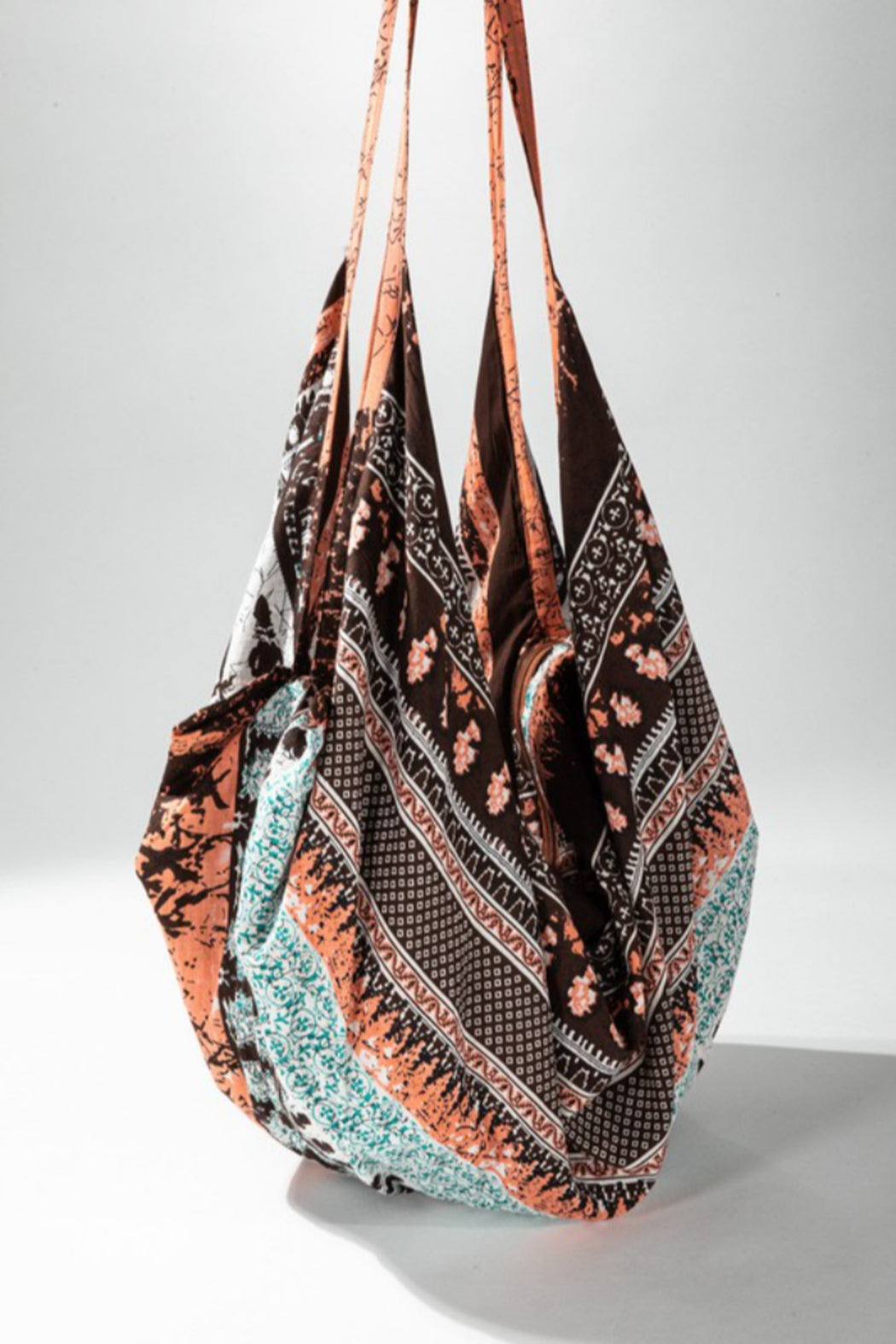 This handcrafted boho bag is a great travel accessory! it features a zipper closure across the top and is machine washable.