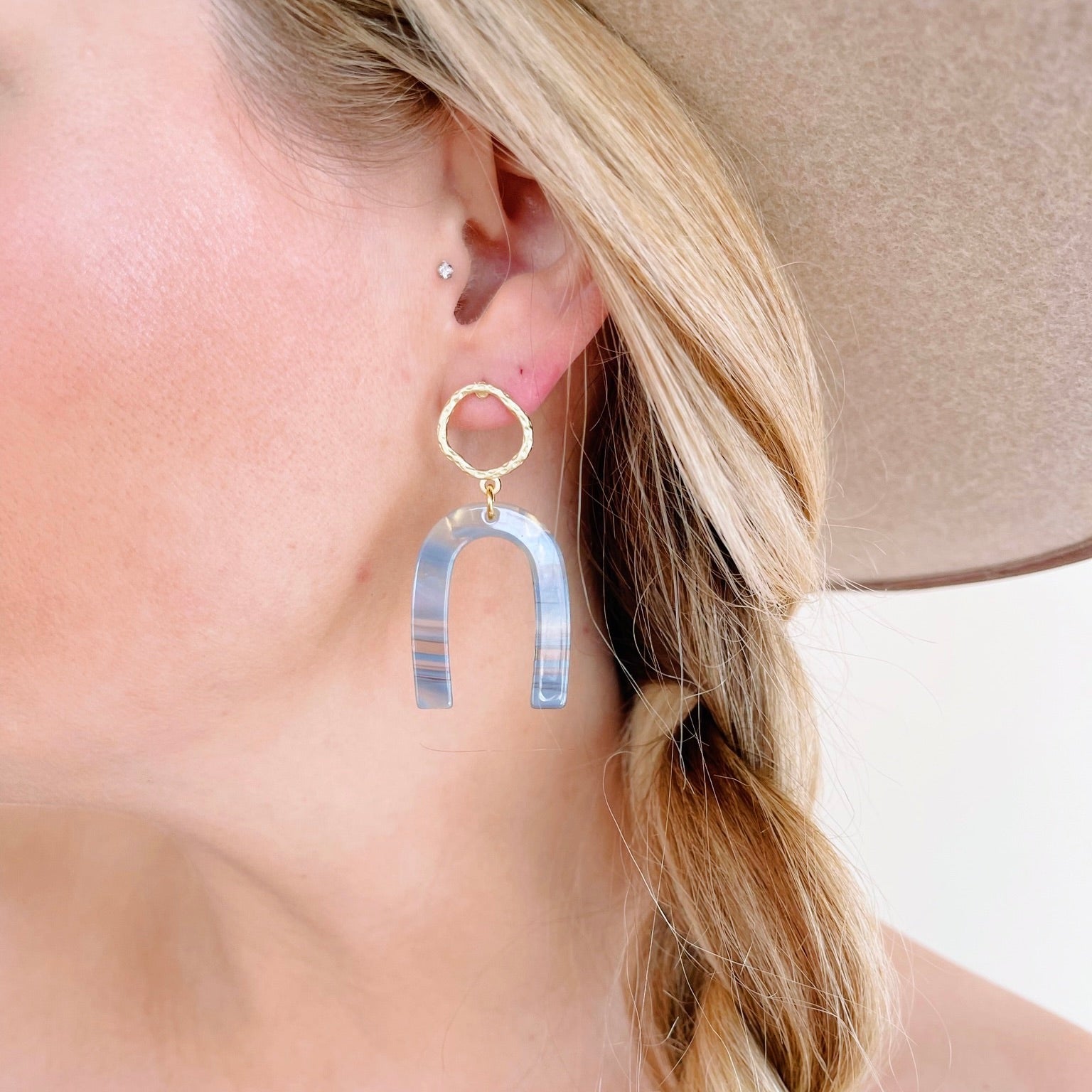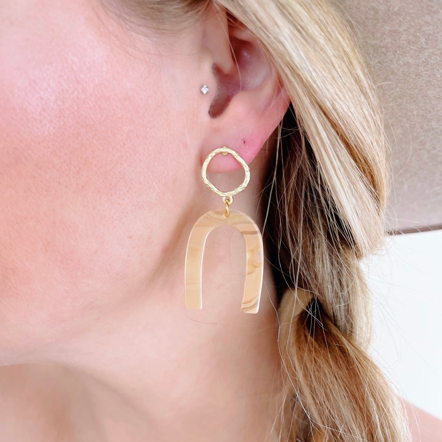 Gold Earring Connector + Horse Shoe Shaped Resin Pendant