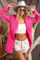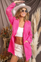 Empower your outfit with confidence and attitude. This hot pink lace blazer is the perfect mix of electric cowgirl and flirty femininity. Achieve sexy sophistication without compromising comfort in this 100% polyester lined jacket with welt pockets. Take control of your look and dare to be bold.