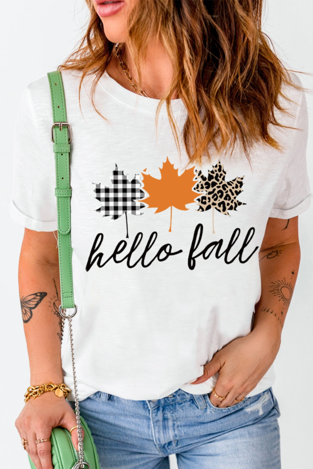 Welcome the changing seasons with this Hello Fall Mapel Leaves Graphic Tee. Crafted from a comfortable polyester and elastane blend, this soft tee will have you in style and comfort all season long. Enjoy the breathability and durability of this 95% Polyester 5% Elastane fabric blend.