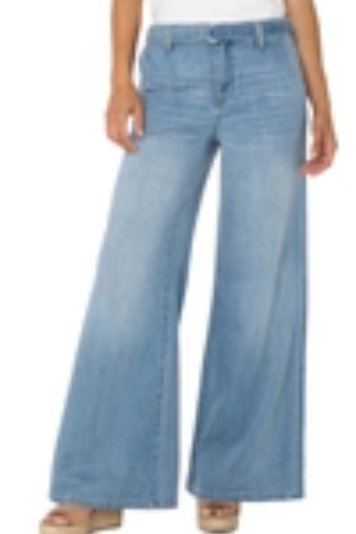 The wide-cut hem adds a fashion-forward twist to a classic silhouette, ensuring you stand out with every step… or Stride! Whether you're hitting the city streets or a night on the town, these jeans are your ticket to chic confidence.
