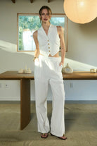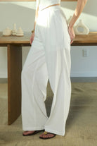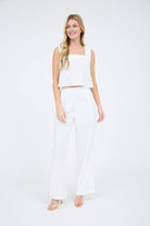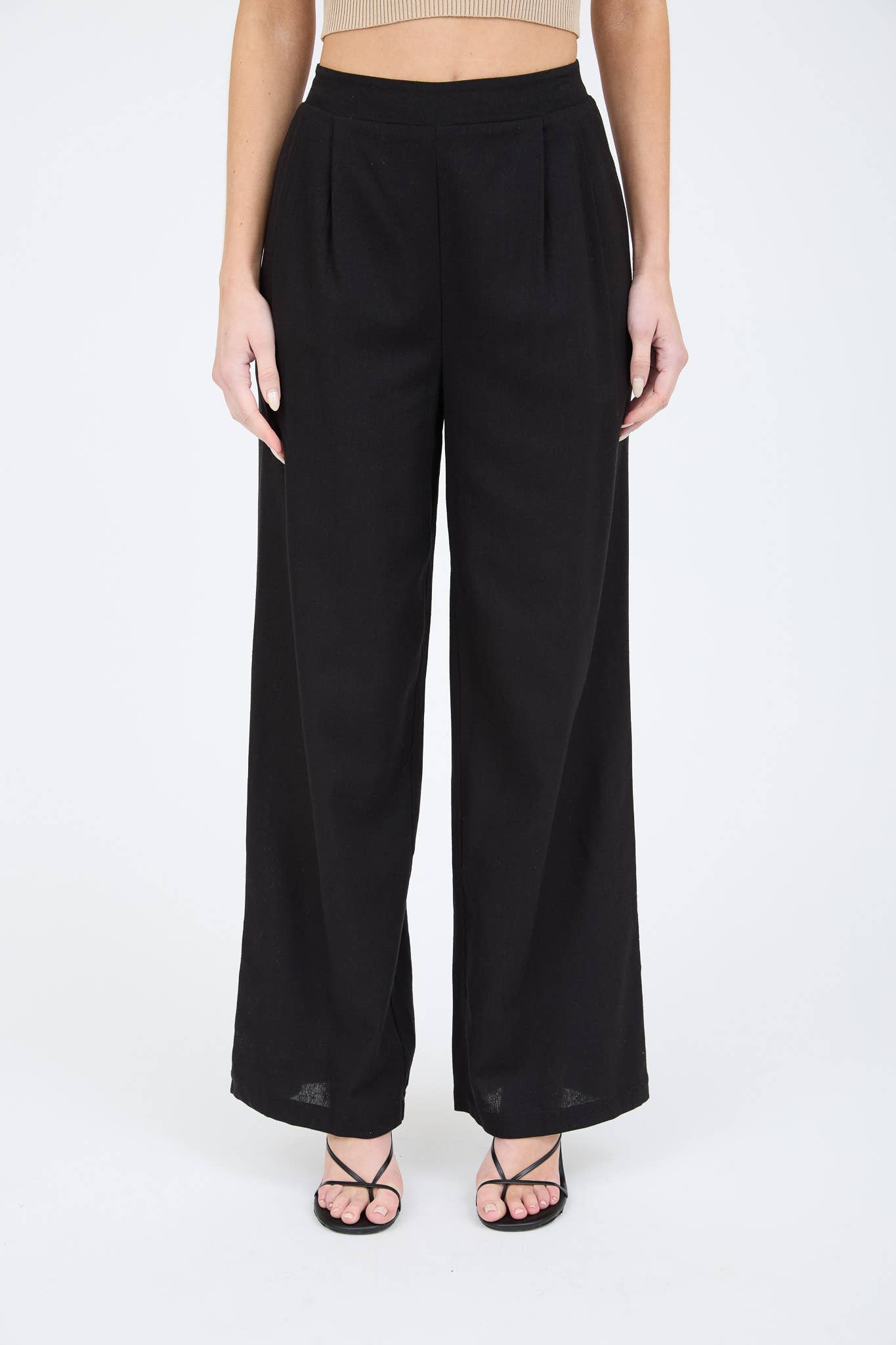 Introducing our High Waisted Front Pleat Pants! Expertly crafted with a back elastic panel, front pleat details, and pocket slits for functionality. Made from a solid linen blend and lined with 100% polyester for comfort. Elevate your wardrobe with these stylish dress pants. Comes in white, black and navy!