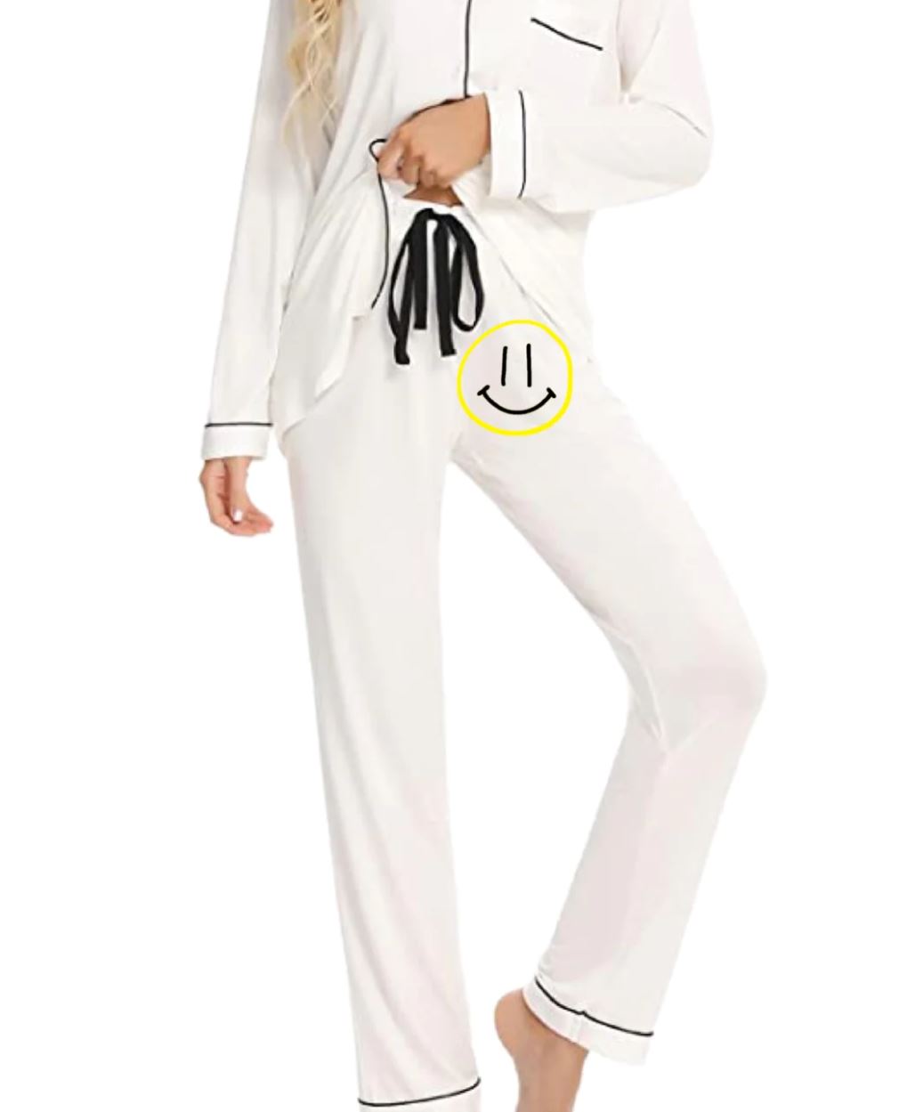 Bottoms have a comfy elastic waistband and adjustable drawstring.