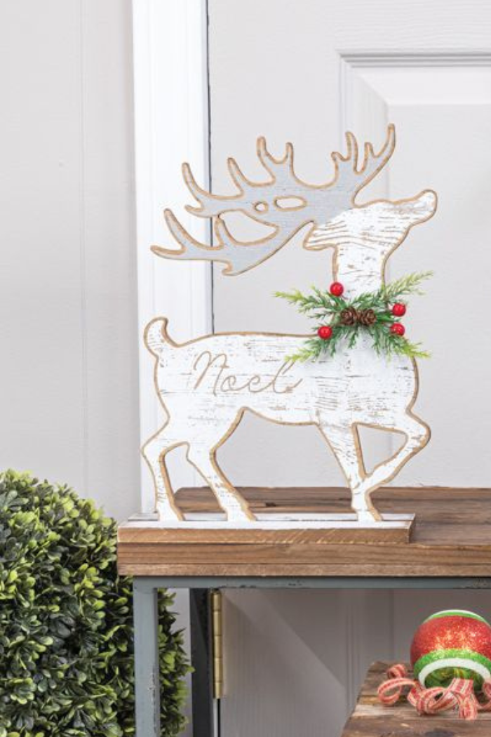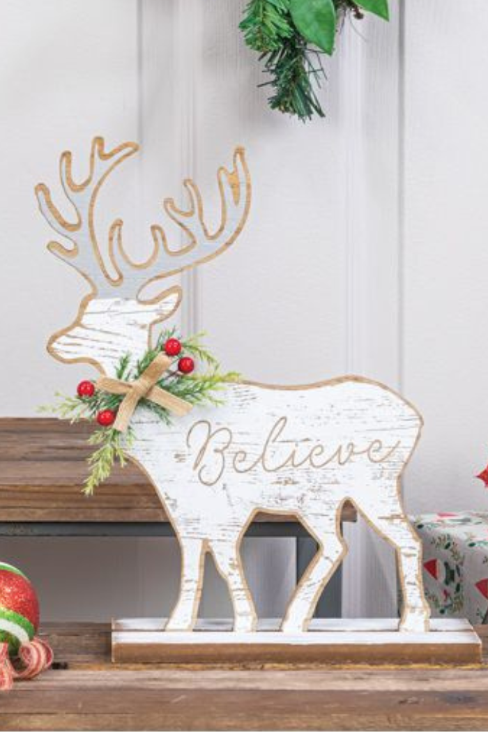 The Holly Deer Wooden Tabletop is an attractive and practical addition to any home or office. Crafted from premium wood with faux trim, it features two beautiful deer designs that make it stand out in any room. Measuring 9-10”W x 11”H x 3¼” D, it is lightweight and easy to clean.
